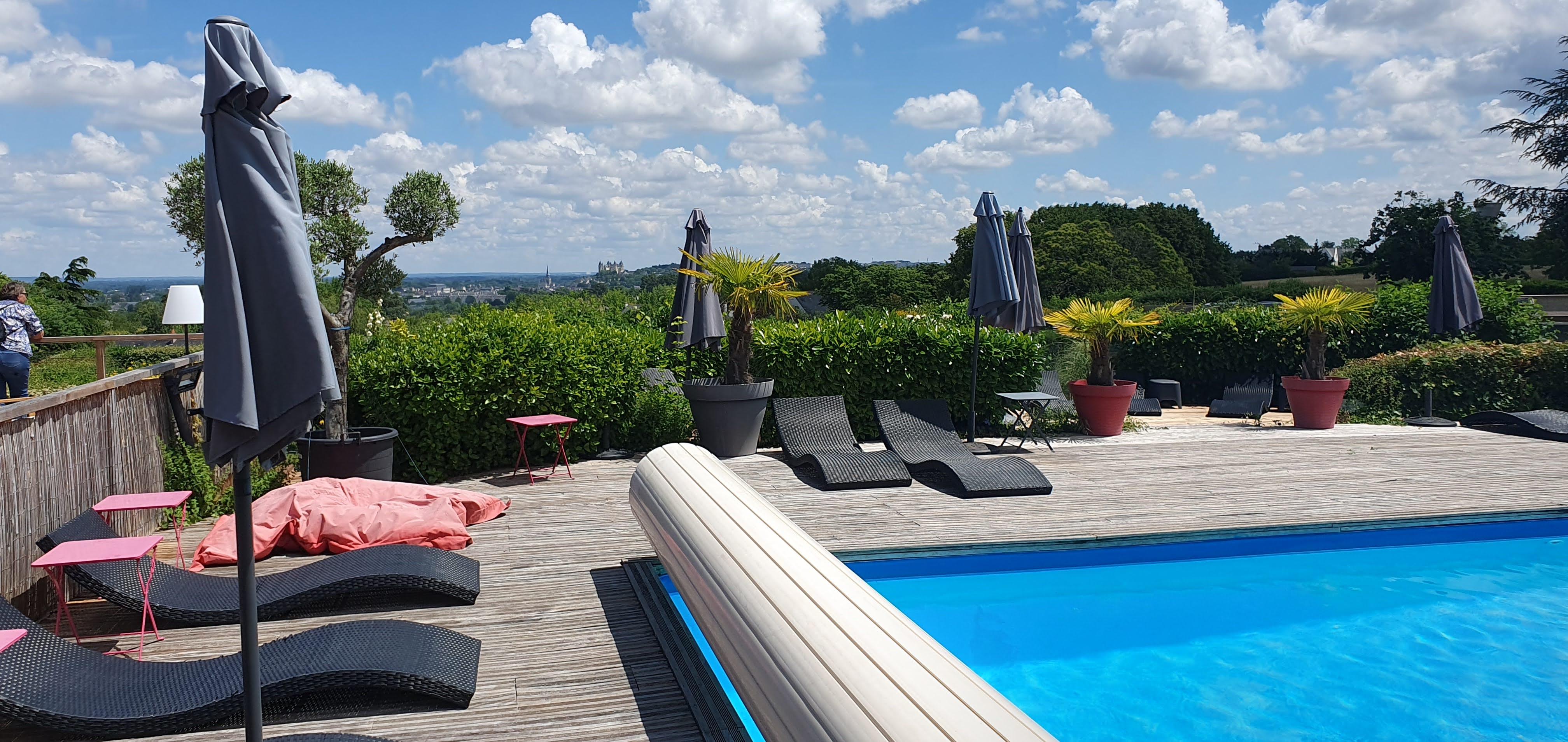 Très bon resto avec piscine. Vue Panoramique sur le Château de Saumur