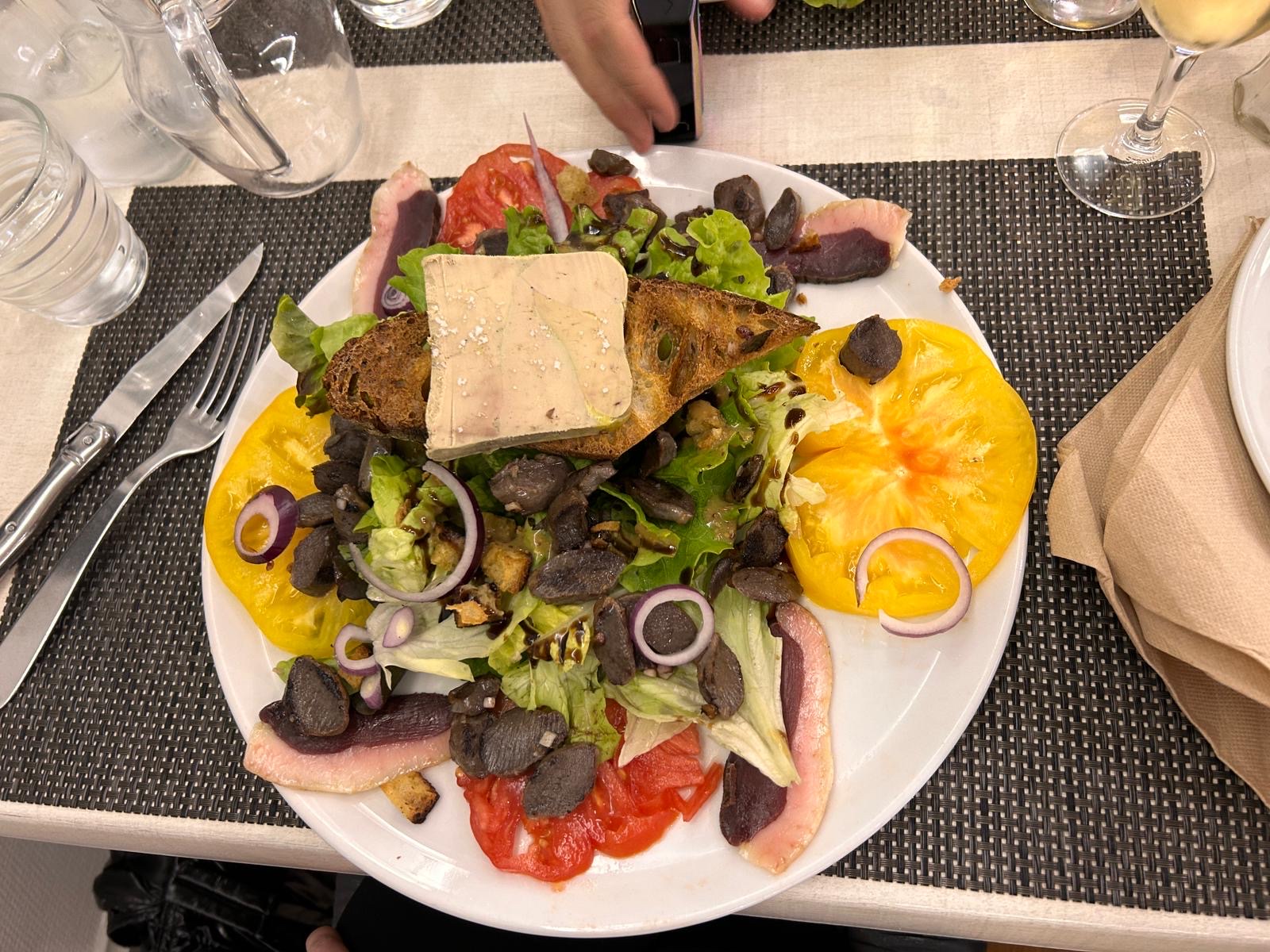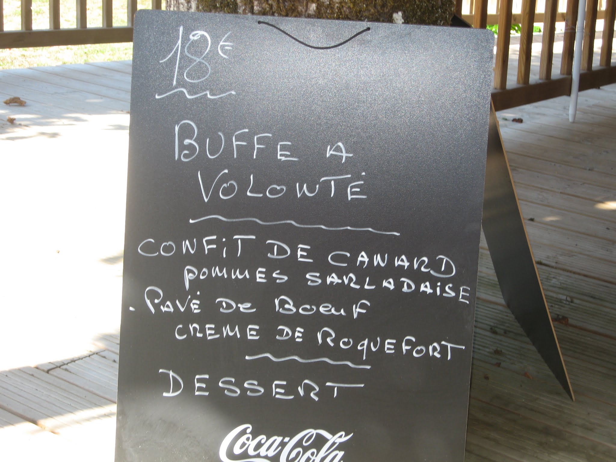 Végétariens passez votre chemin aucune alternative ne vous sera proposée même pas une omelette au cèpes ou girolles spécialité de la région. L’accueil souriant de la propriétaire sur la terrasse du bar rattrape un peu la déception.