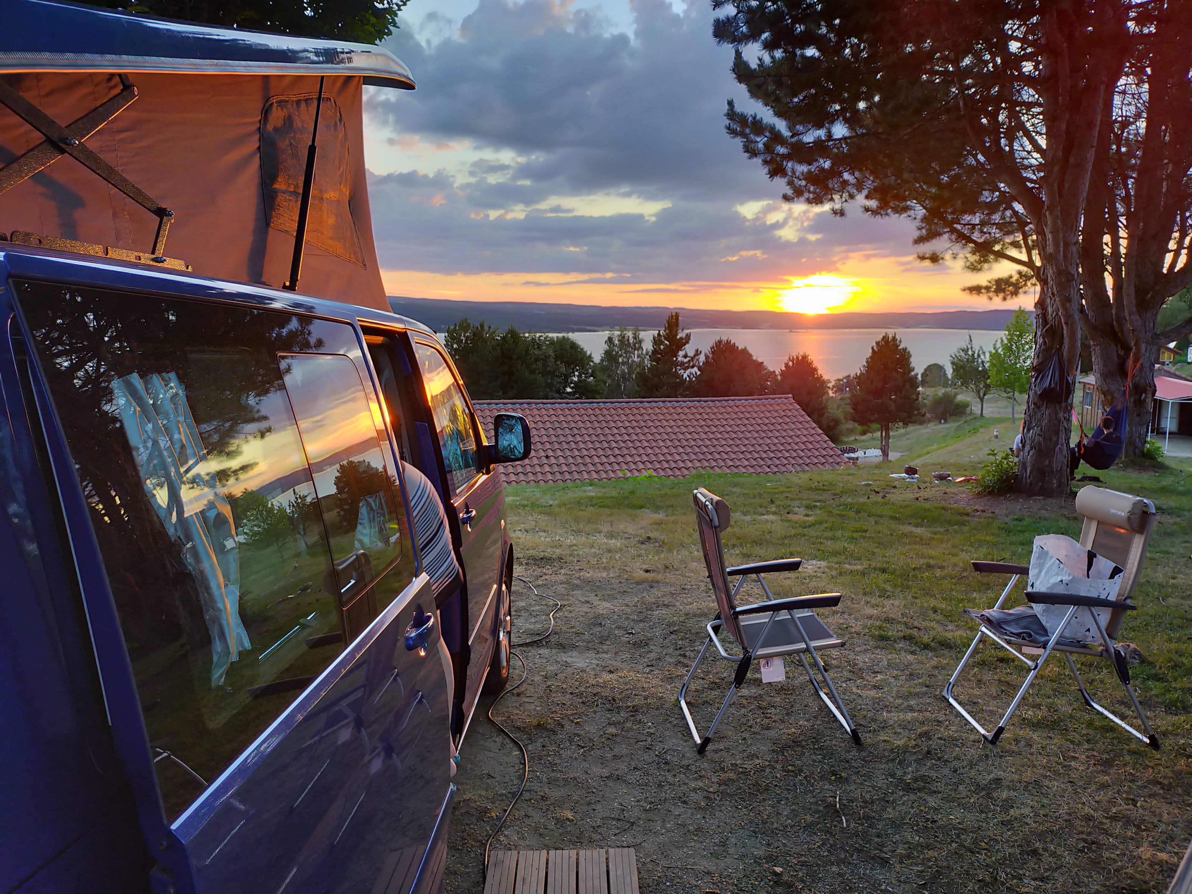 Nous avons passé une semaine fin juin au camping. Super emplacement avec vue magnifique sur le lac. A recommander vivement, avec pain et viennoiseries à l'accueil sur commande la veille.