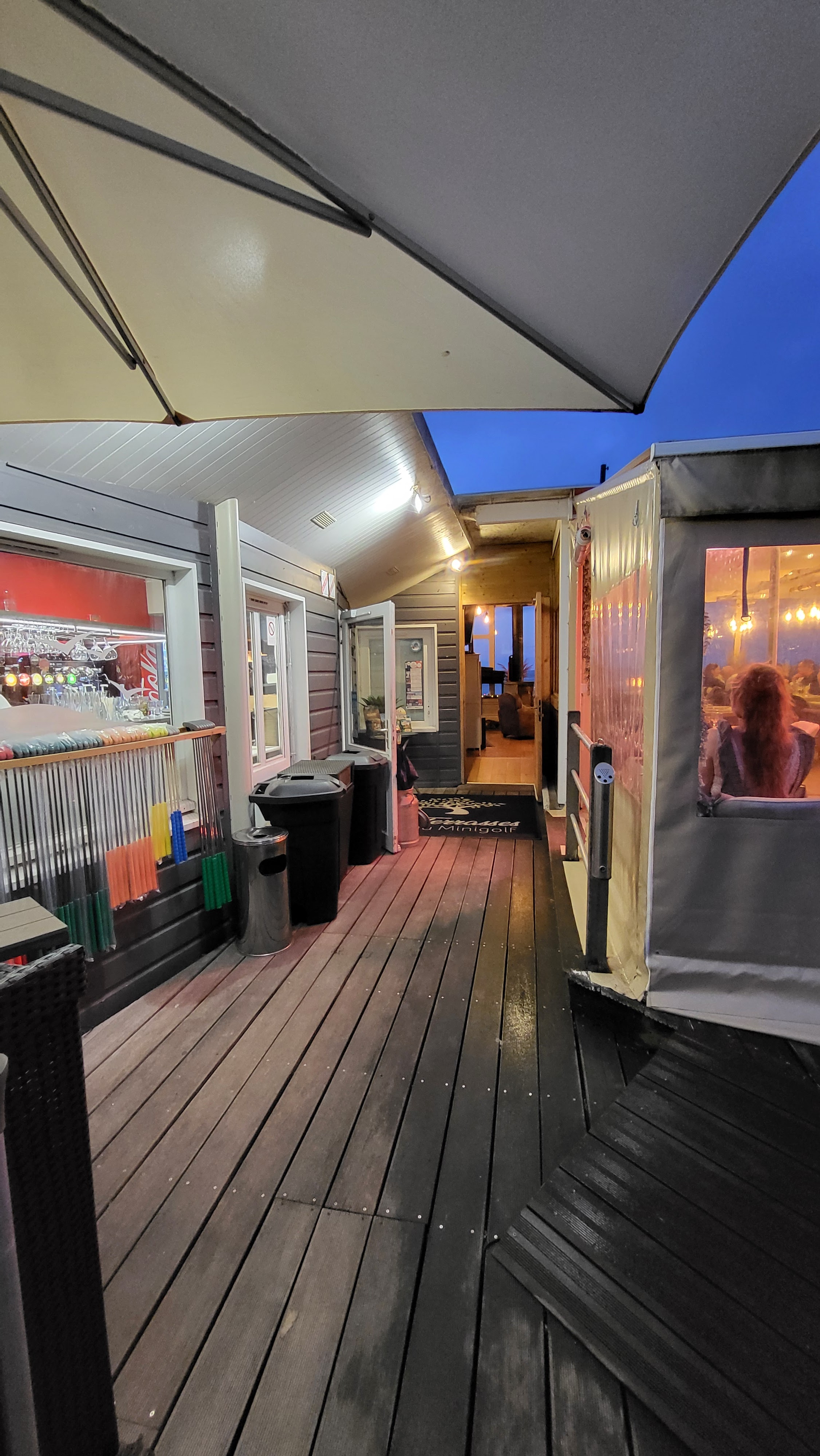 Superbe terrasse en bois complètement refaite et agrandie, face à la mer. A retenir car il n’y a pas tant de terrasses en bord de mer que ça. Je ne mets pas 5 car en revanche les tapas « maison » sont graillonneuses, vraiment pas fameuses.