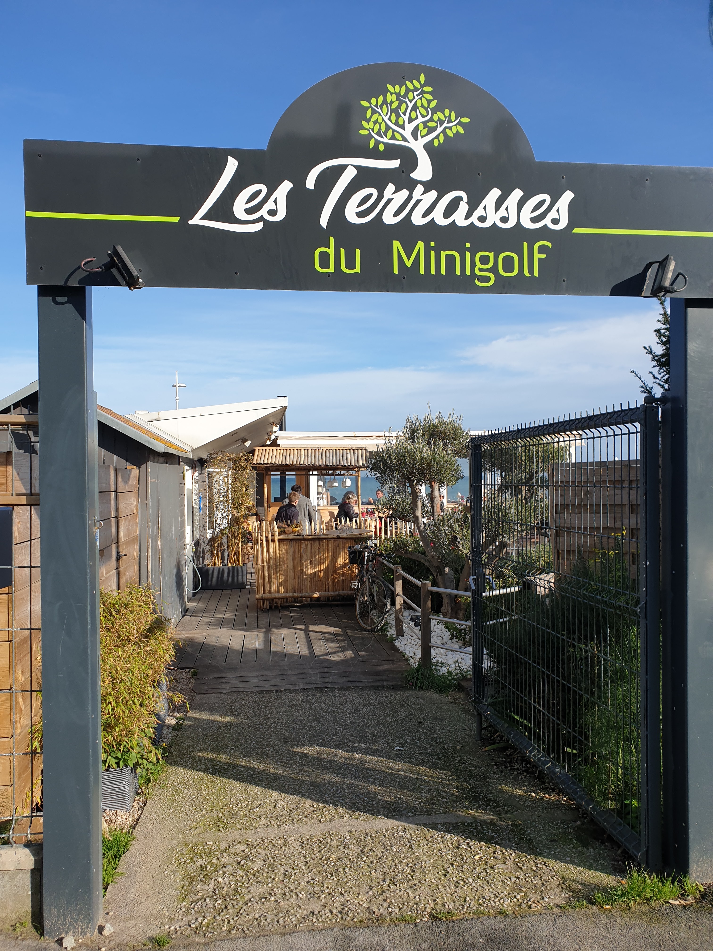 Bon spot pour un verre ou un mini-golf face a la mer. Jolie terasse…