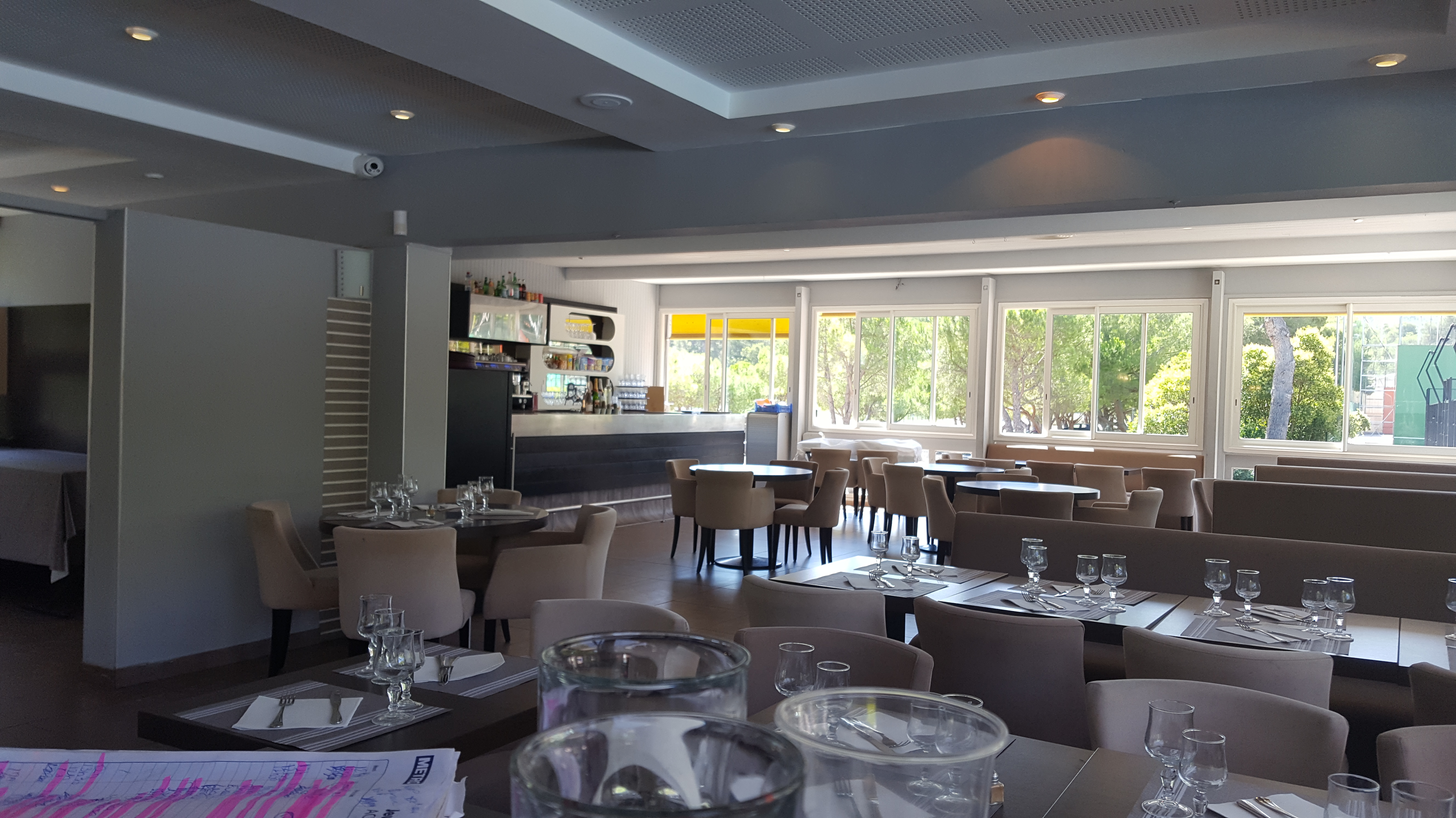 Lieu paisible, très beaux buffets entrées et desserts, les plats chauds variés si.t positionnés à l'extérieur. Très belle terrasse, le repas n'est pas excessif vu la qualité des produits, avec un supplément on peut profiter de la piscine sans faire partie du club de tennis. 😎