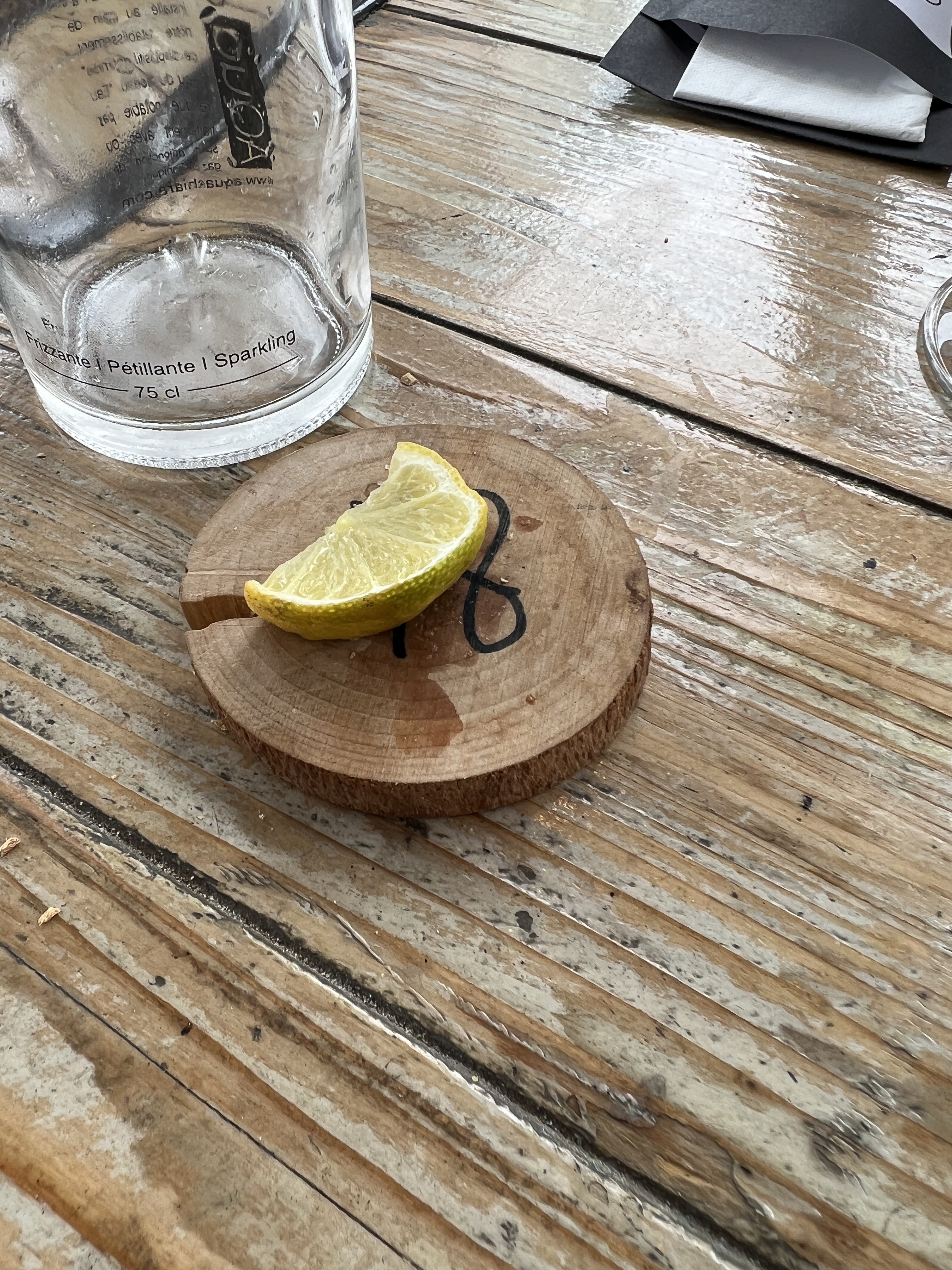 Une heure pour les plats Du coup on a pas pris de dessert On a bien fait car 15 minutes pour les cafés On demande une rondelle de citron. On nous l’apporte a même la main. Minuscule et dur de la veille. Tout ça n’a pas dérangé la dame que je pense gérante, elle était assise sur un fauteuil au fond du restaurant.