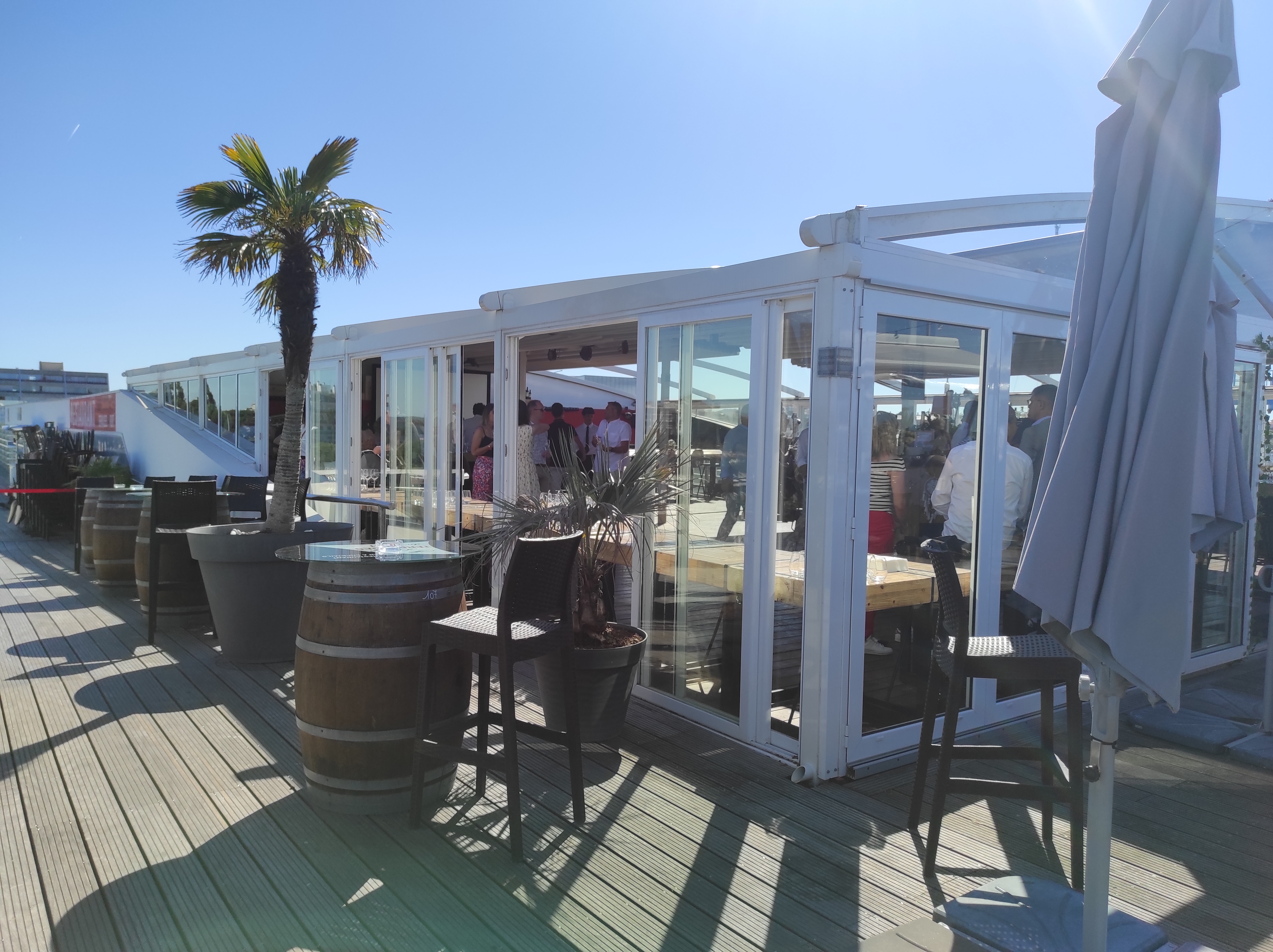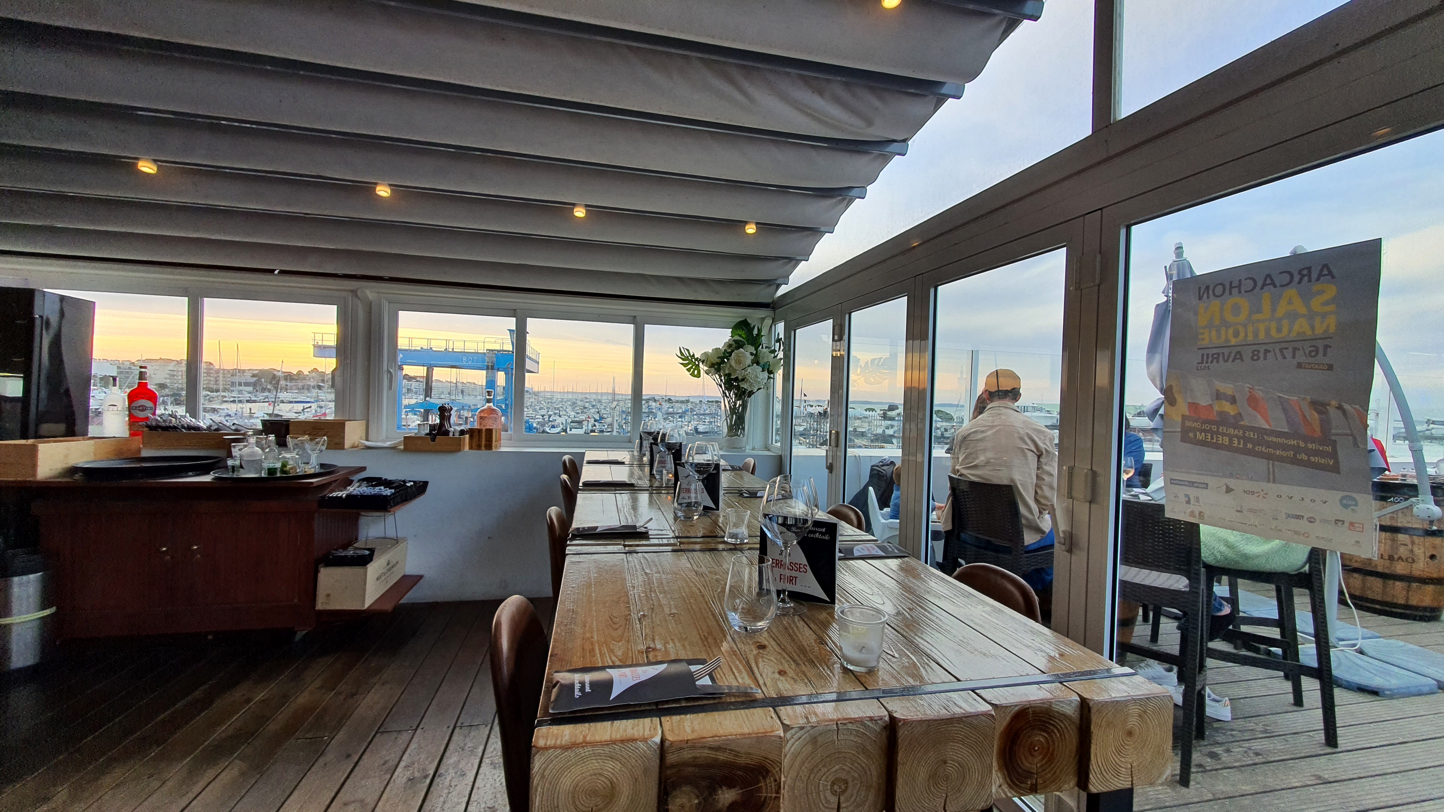 L’accès est atypique, restaurant excentré, à l’intérieur du port de plaisance mais après avoir monté une volée d’escalier, une terrasse magnifique, une salle au toit ouvrant , une belle carte, des cocktails sympas, classiques ou plus originaux, un super service à l’écoute. Parfait