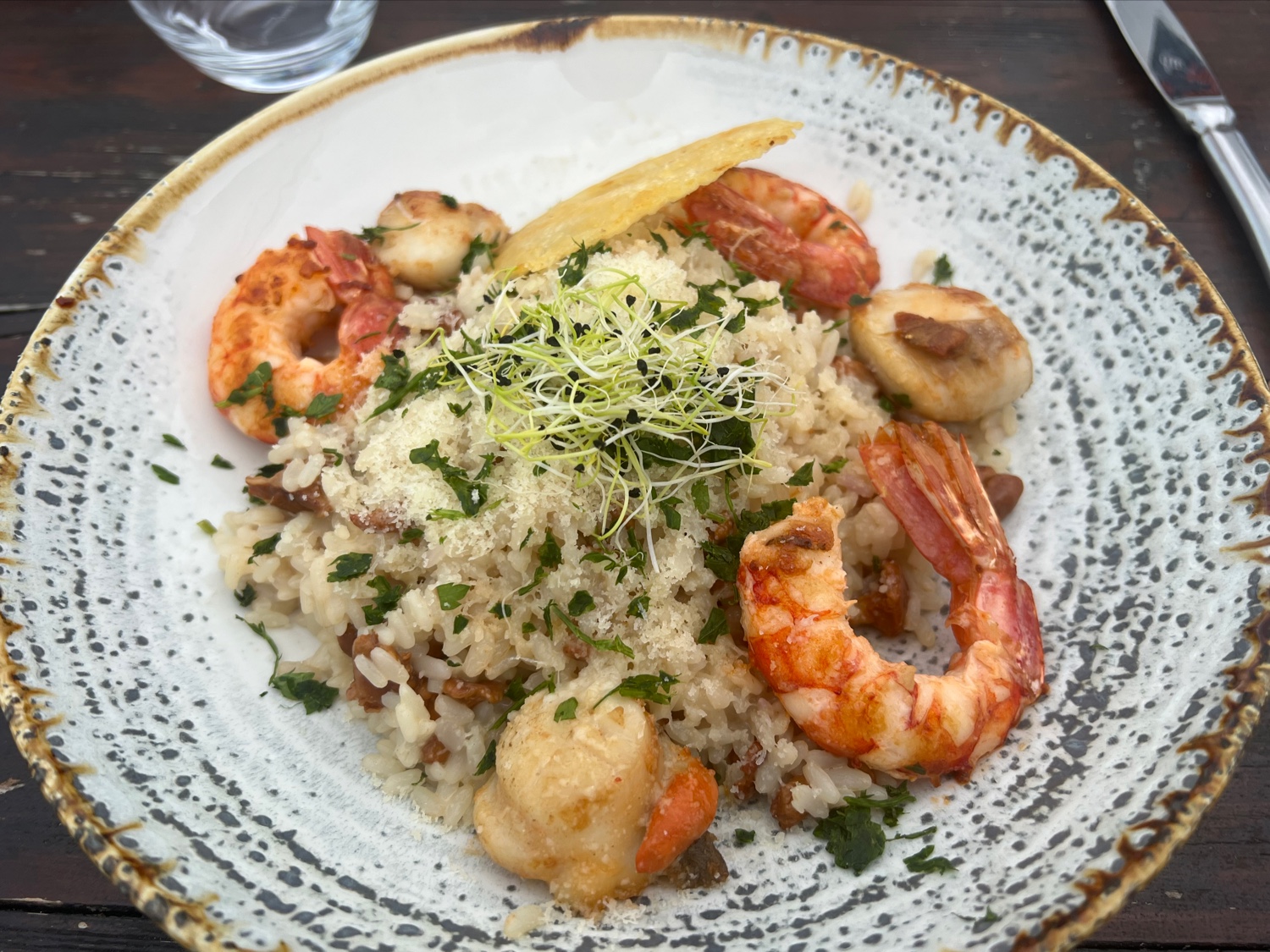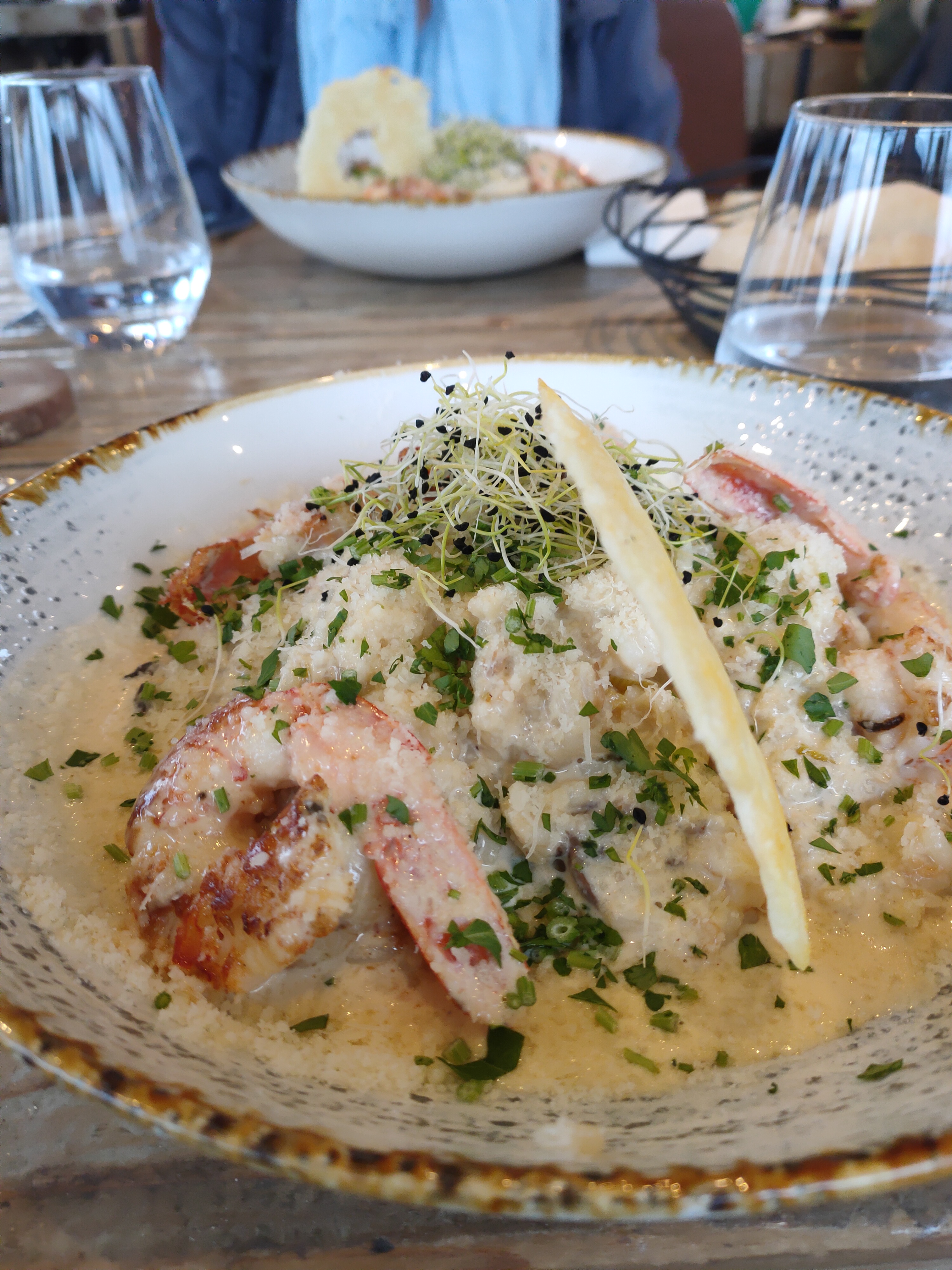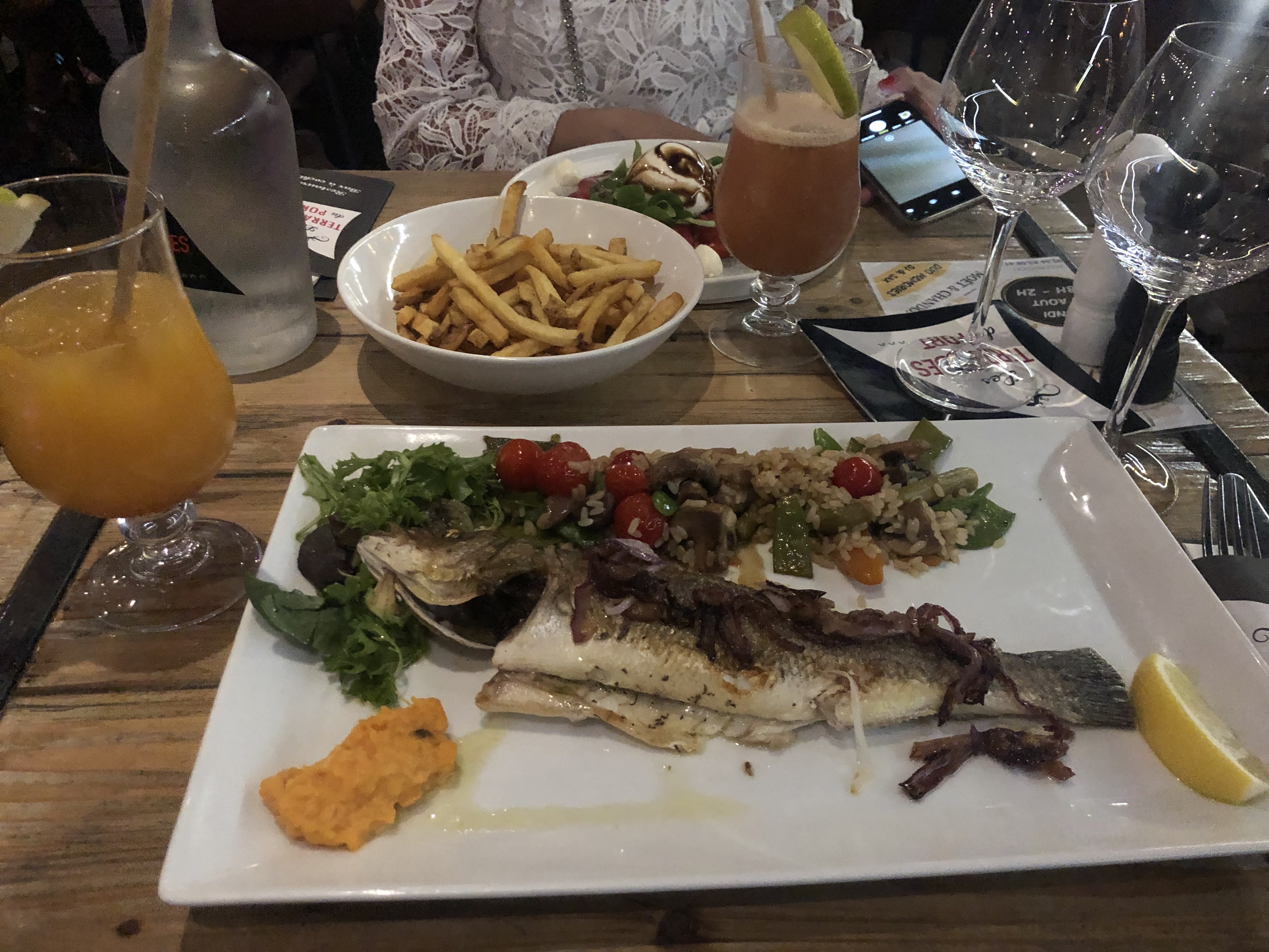 Joli point de vue de la terrasse Côté restauration : 1/20 Risotto de la mer avec2 gambas rien de plus! Un plat de poisson ne correspondant pas à l’offre Très mauvais rapport qualité prix Passez votre chemin…