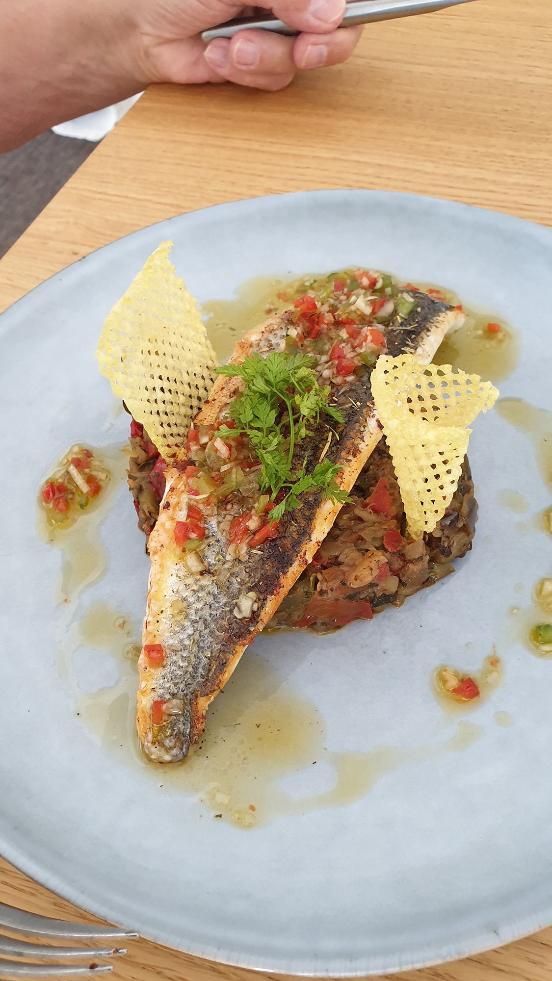 Je me suis régalée avec le saumon et risotto et écume de wazabi. Très bon café gourmand. Le cadre est très bien, sur la terrasse à l ombre des pins. Je recommande. C est cependant un peu cher. Mais c est bon!