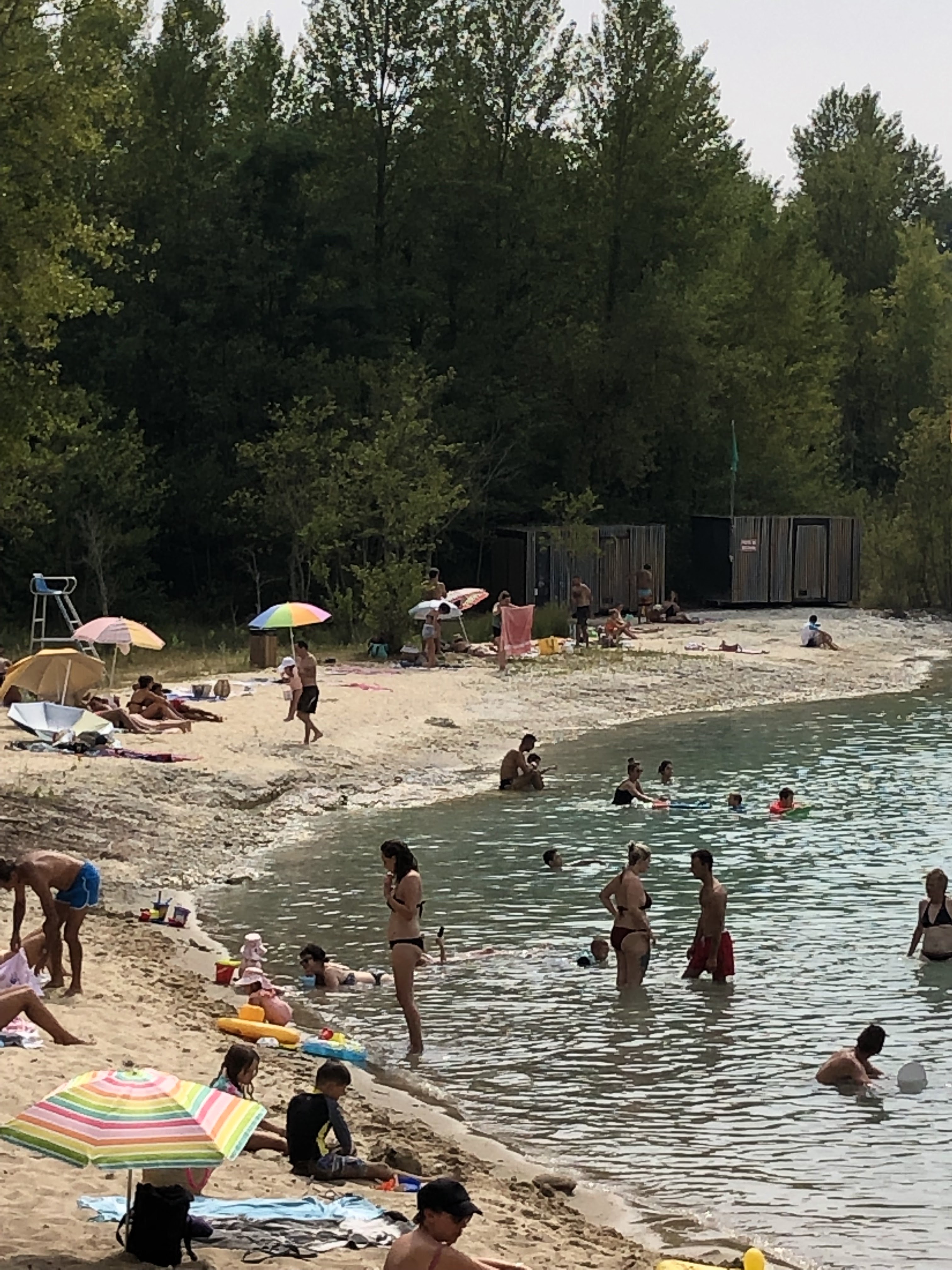 Et bien quelle déception, payer pour ça !!!! Fuir car mise à part la couleur de l'eau qui est effectivement jolie, le sol est jonché de déchets. Des cailloux sont la cause d'une impossibilité d'aller dans l'eau. On est les uns sur les autres sur la plage. C'est une catastrophe car elle est toute petite et peu d'ombre. Bref, cela ne vaut pas ses 7 € et quelques + les frais de dossier. D'ailleurs maintenant il faut réserver en ligne sous peine de ne pas être accepté. Une catastrophe, autant aller au lac d'hostens qui est gratuit et très propre, et grand.