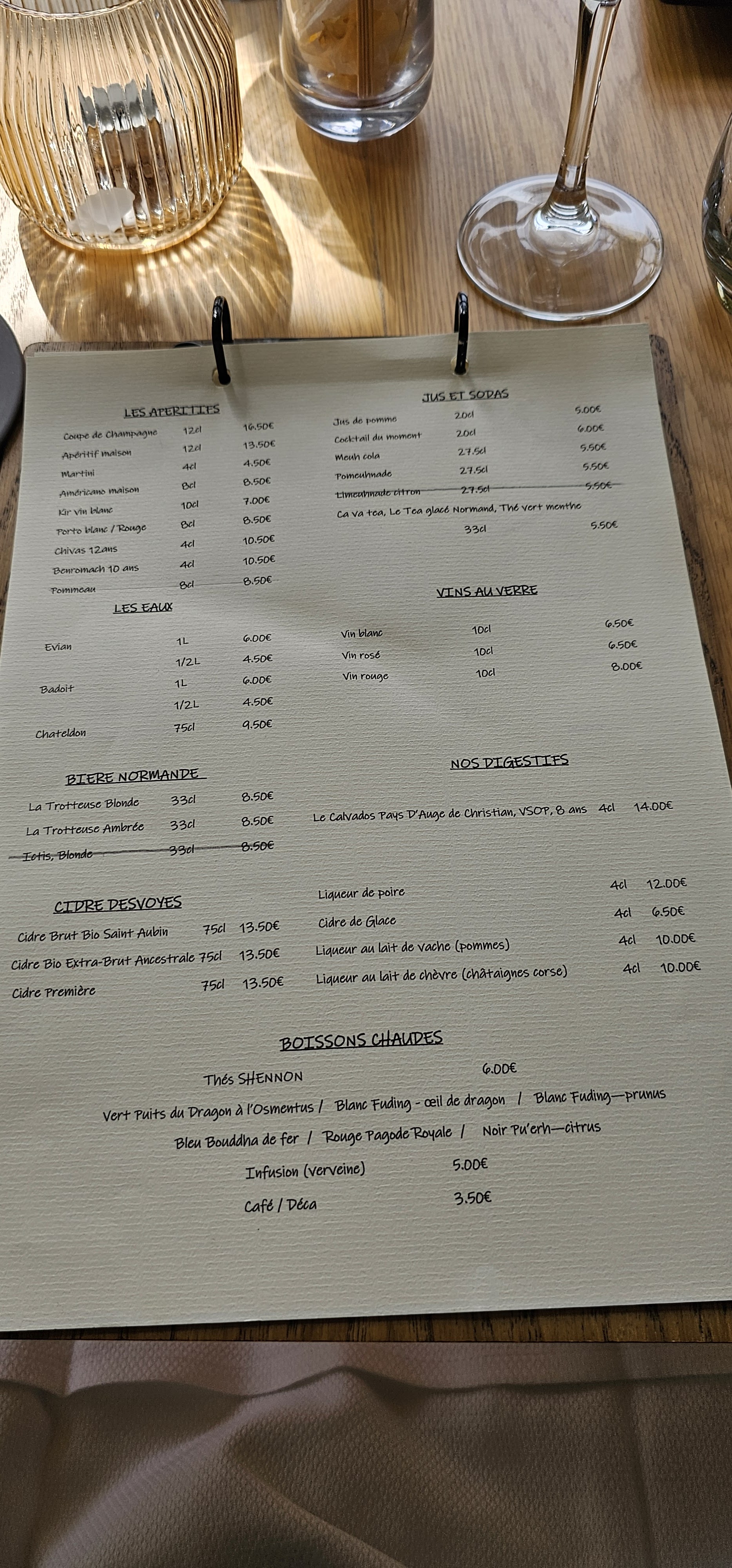 Exceptionnel menu dégustation en 7 temps. C'était beau et bon, que dis-je, délicieux ! De la haute gastronomie. Excellent rapport qualité-prix Et en plus un accueil super sympa. Notre nouvelle référence vers Houlgate/Cabourg. Bravo !