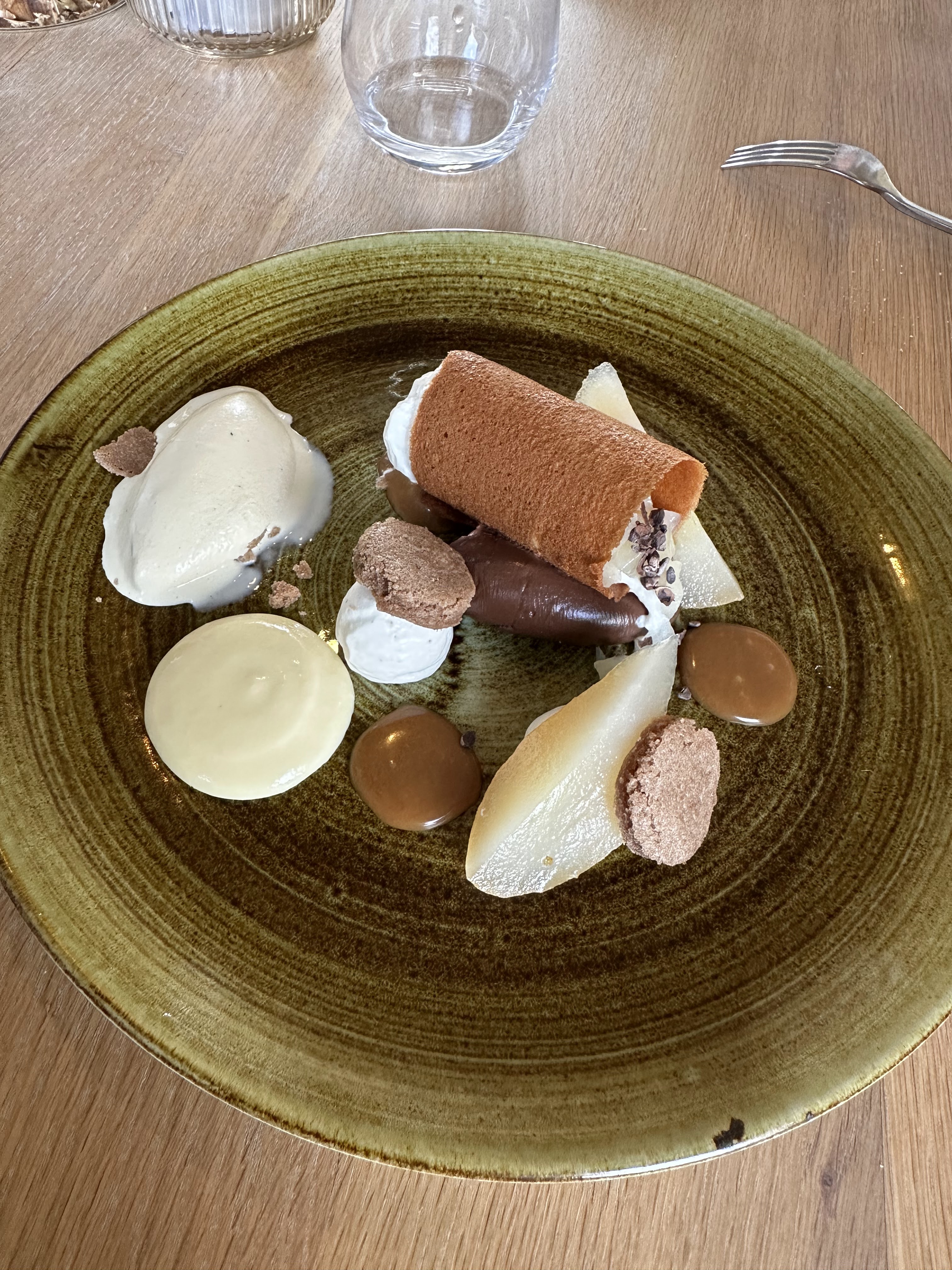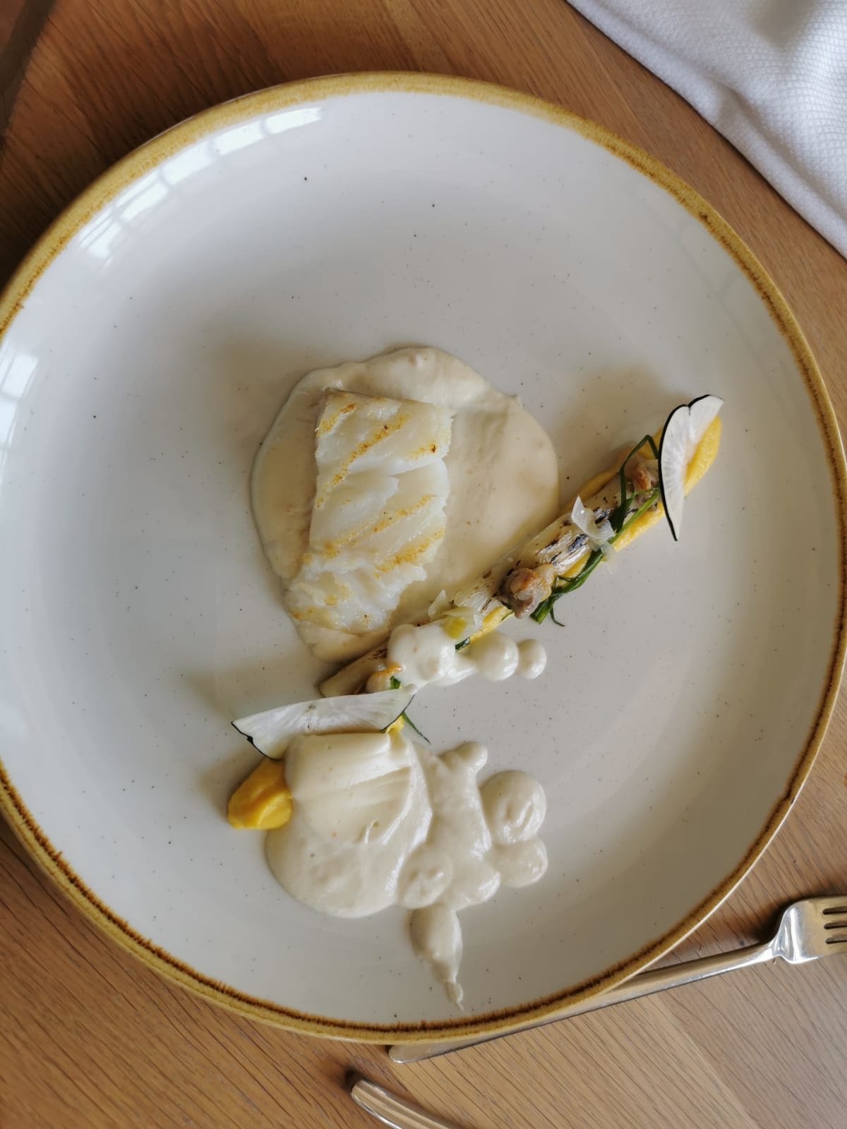 Agréable auberge gastronomique centrée sur les produits de la mer! C’est recherché, assez original et plutôt réussi. Google me force à rédiger des avis plus longs. En entrée, œuf parfait, champignons et purée de céleri. Cabillaud et risotto Pour finir, un dessert frais et fruité