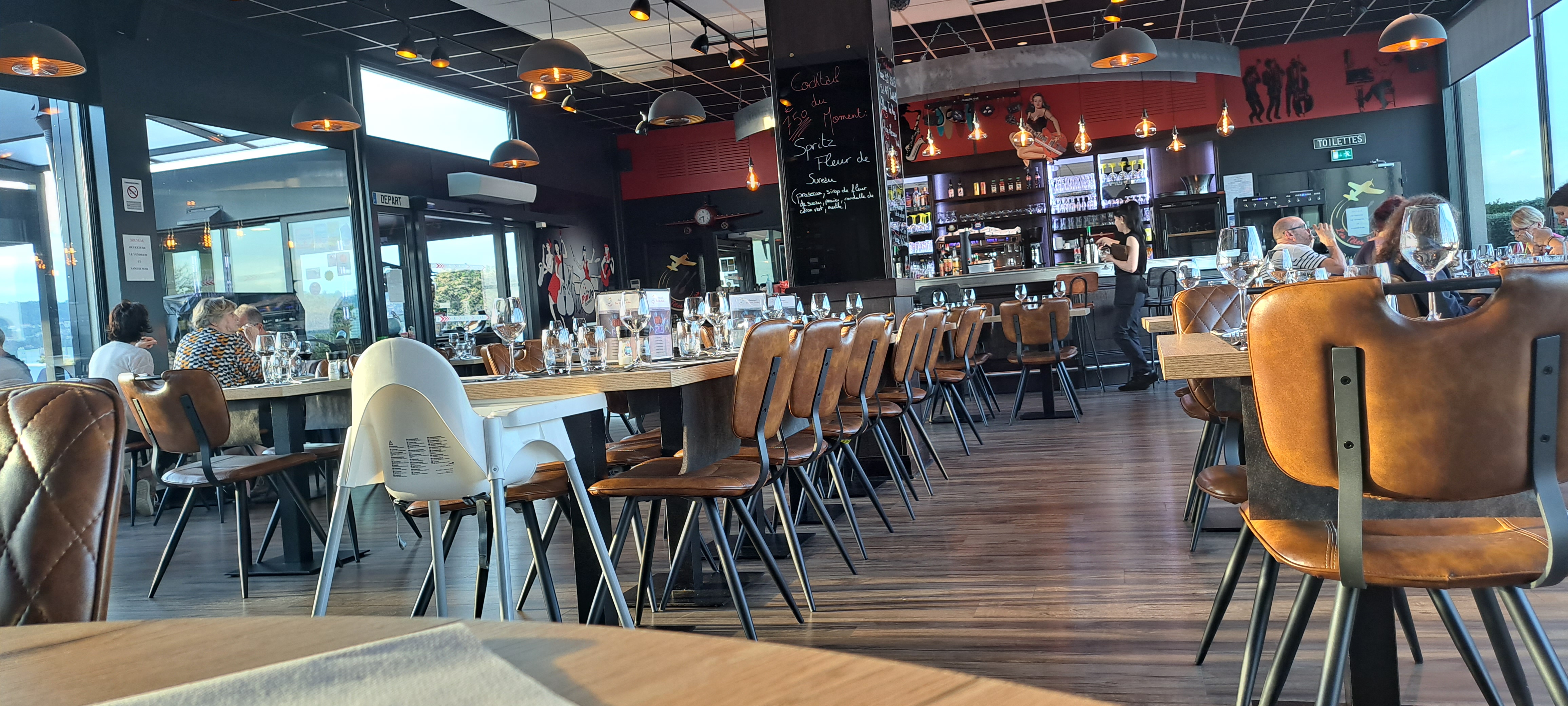 Super décoration / neuf / vue sur les pistes 🚁🚁🛩🛩/ très lumineux / concept dans l'ancien hall d'embarquement / repas : 20/10 👍 / personnel plus qu'au top / parking largement suffisant pour stationner les vehicules. Je recommande ++++++👍👍👍👍👍👍👍