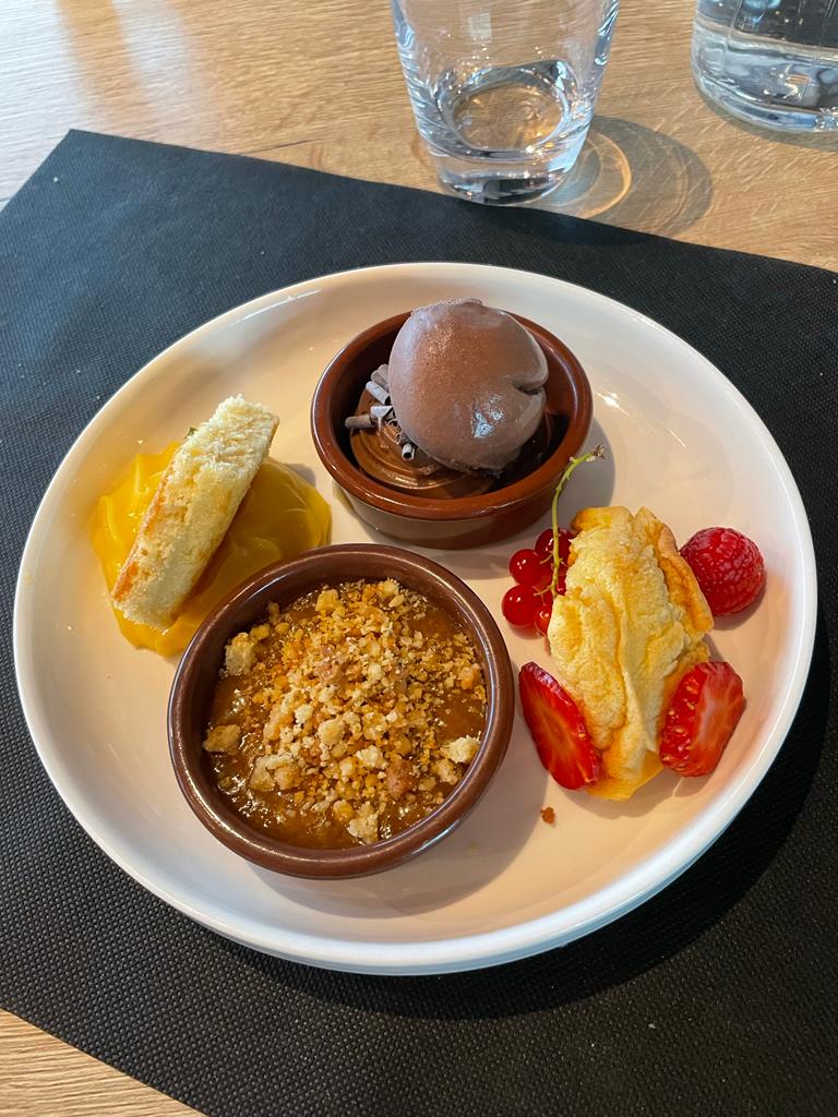 Plats mêlant de bonnes saveurs réalisés avec de bons ingrédients, Conseil sur le vin pertinent. Dessert un peu trop copieux si vous prenez entrée et plat. Accueil au top
