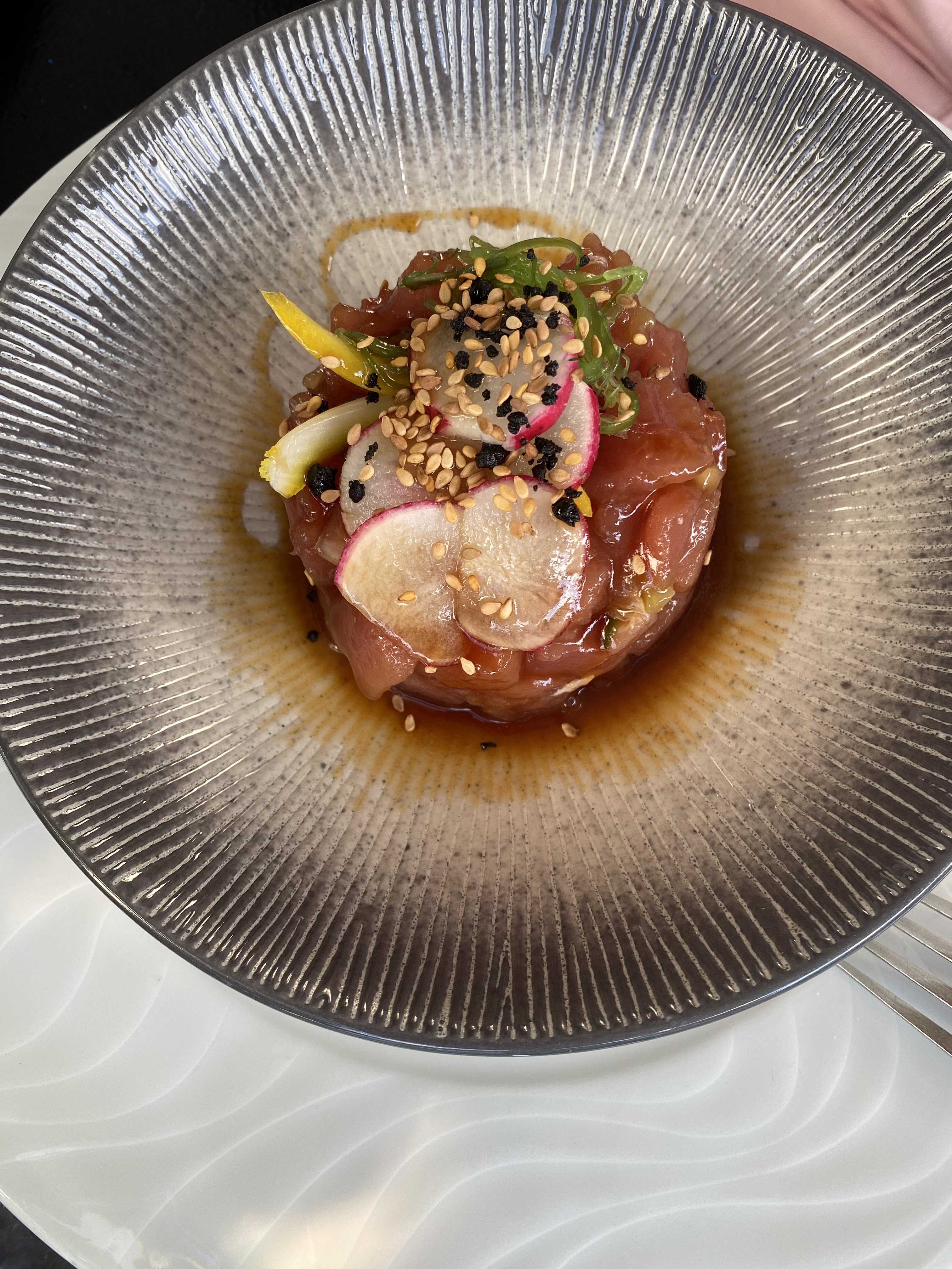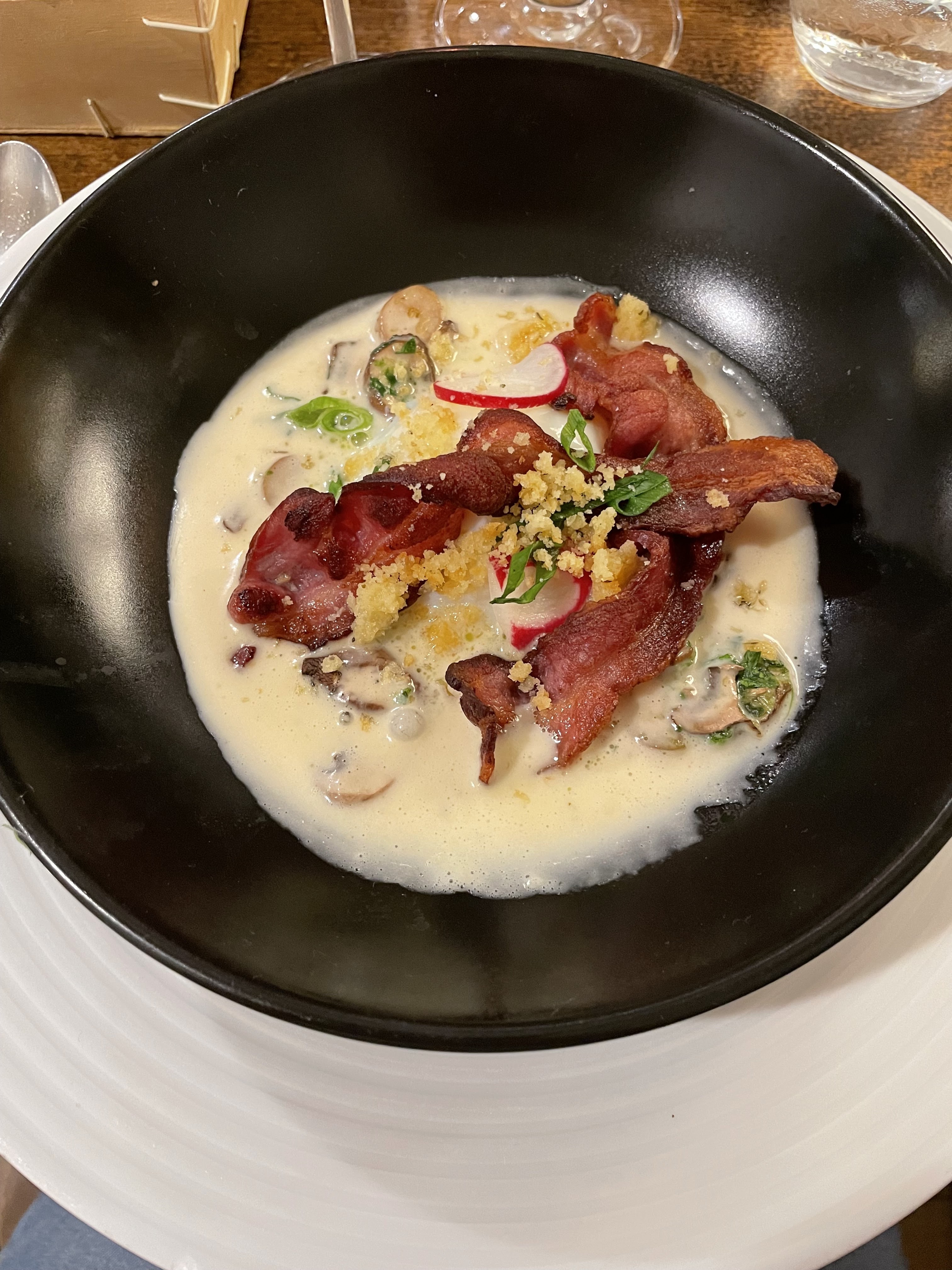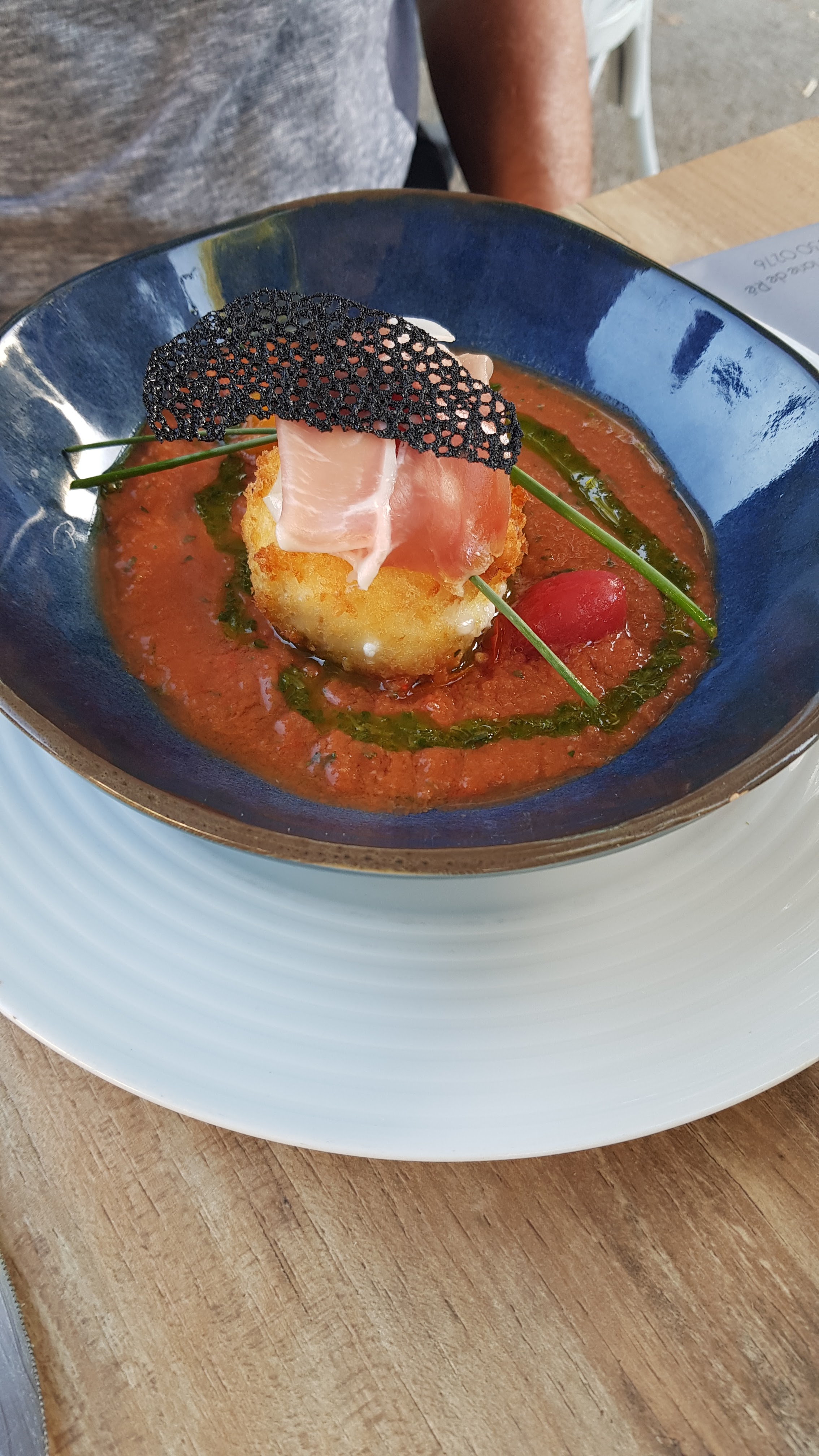 J’ai pris en entrée une burrata croustillante avec un gaspacho de tomate jaune. Ce fut le meilleur gaspacho que j’ai pu gouté. Frais et savoureux les ingrédients étaient de qualité ! 5 étoiles grandement méritées