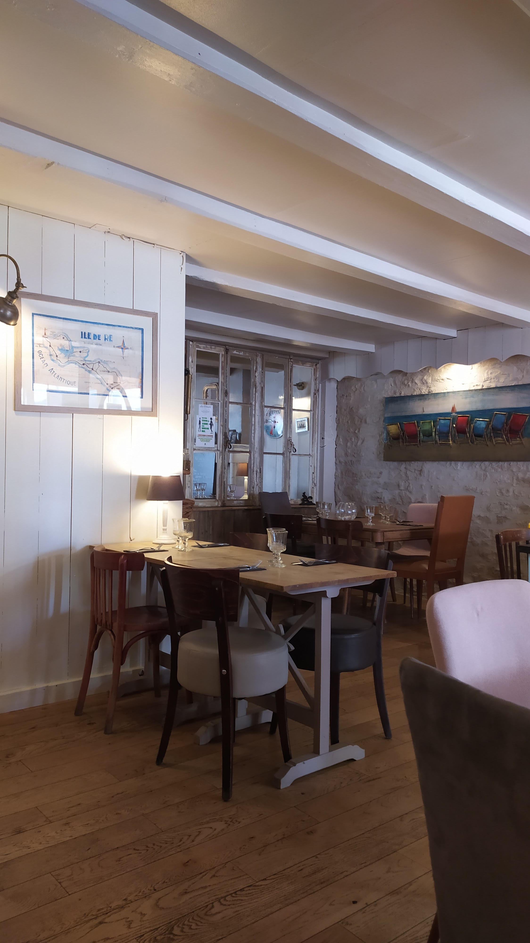 Nous venions souvent à ce restaurant quand nous habitions sur l’île de ré et de temps en temps avec des collègues ou amis. J’aime beaucoup la décoration rétro. La carte est assez vaste et pour tous les goûts. Les prix sont raisonnables pour l’endroit. Du coup quand nous nous rendons sur l’île, nous mangeons dans ce restaurant avec toujours autant de plaisir. J'y suis retourné ce mois-ci, en septembre 2019 et toujours aussi accueillant. La salle est toujours vintage, j'adore, et pas de soucis avec mon chien. Le parking est gratuit pendant 1 heure, donc suffisant pour se restaurer et se diriger vers les Portes en ré pour photographier à lilleau des niges, les oiseaux et le paysages malgré un soleil très dur.