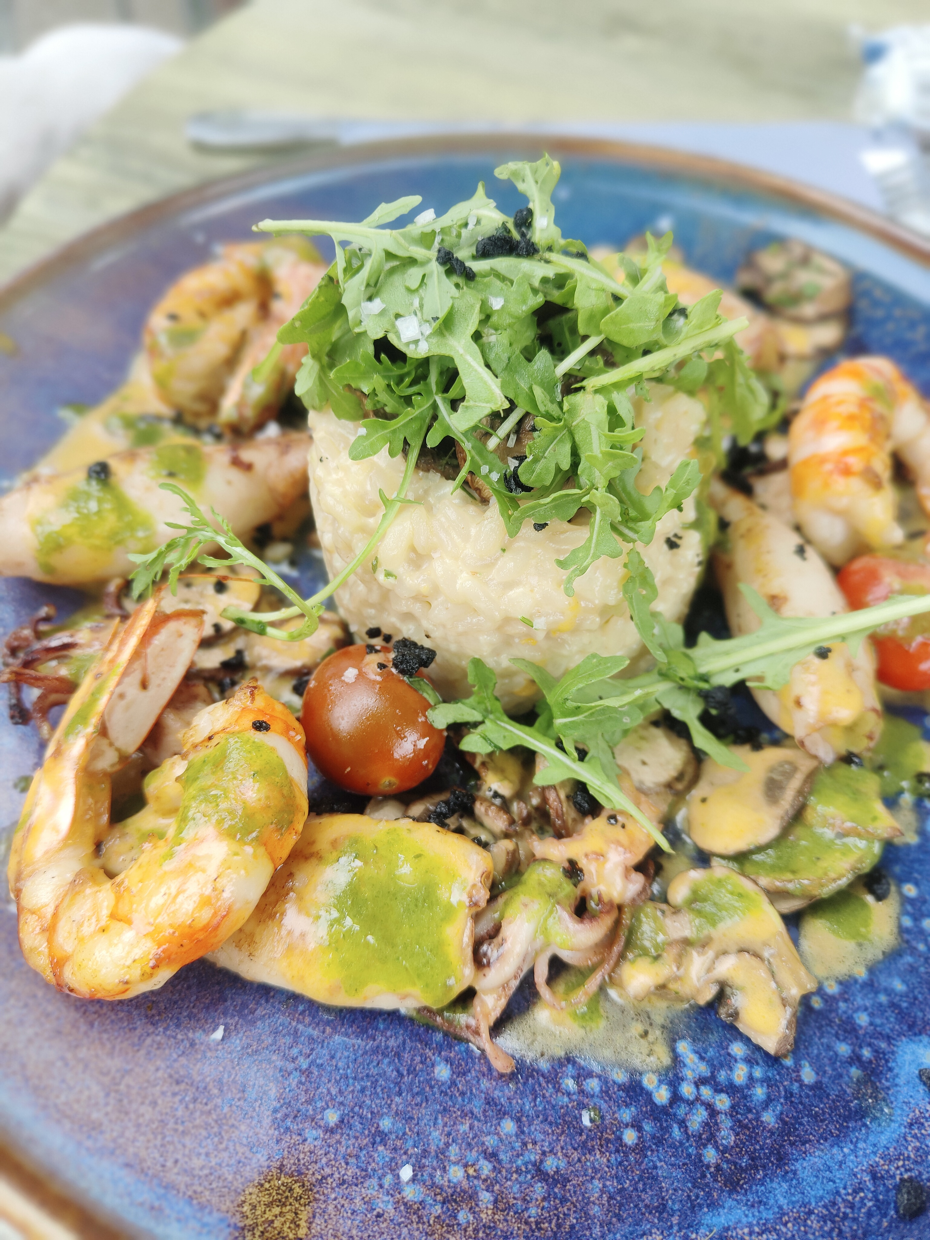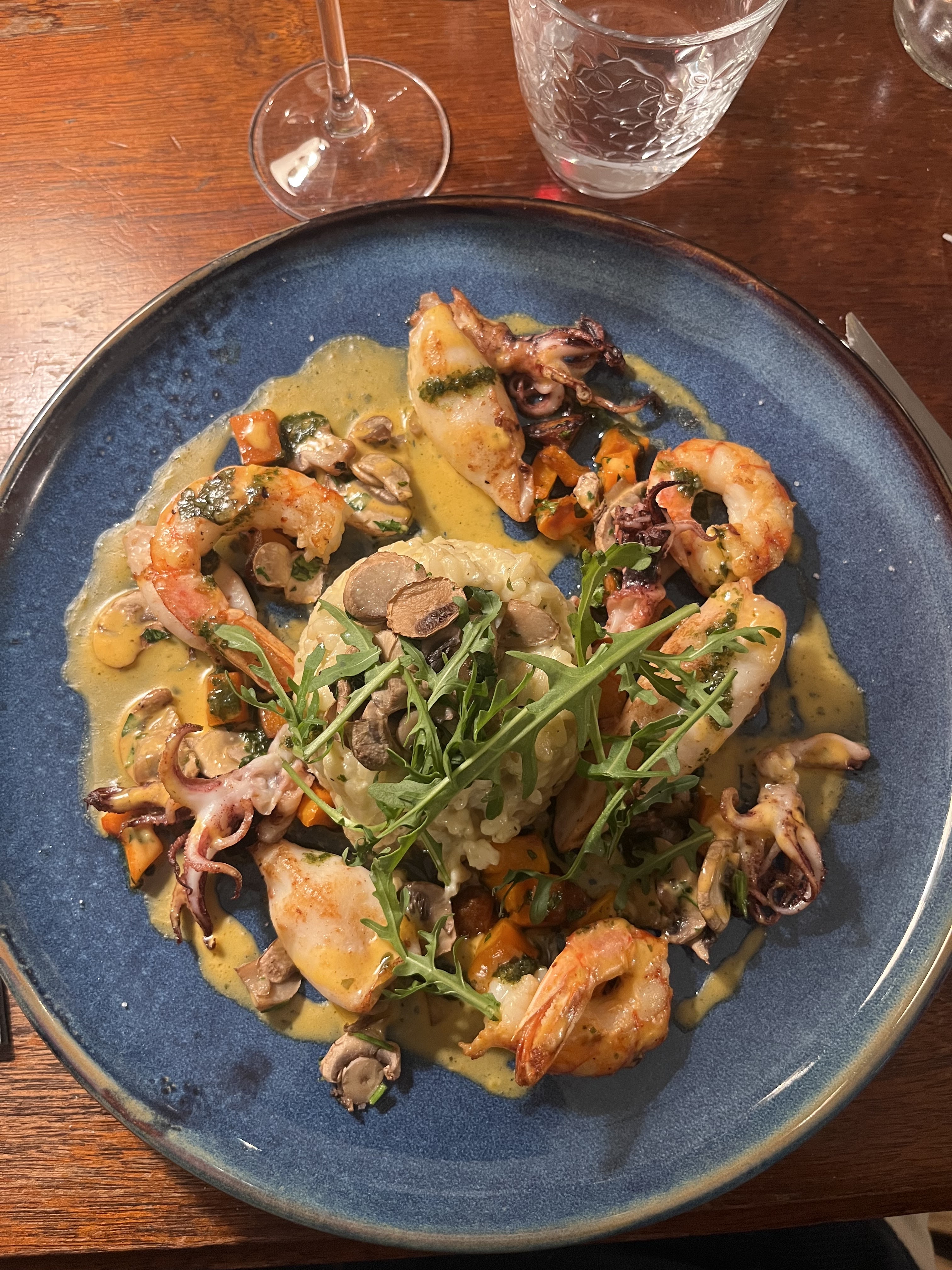 Très bon rapport qualité prix ! Leur rissoto crevettes chipirons infusion de chorizo, est excellent