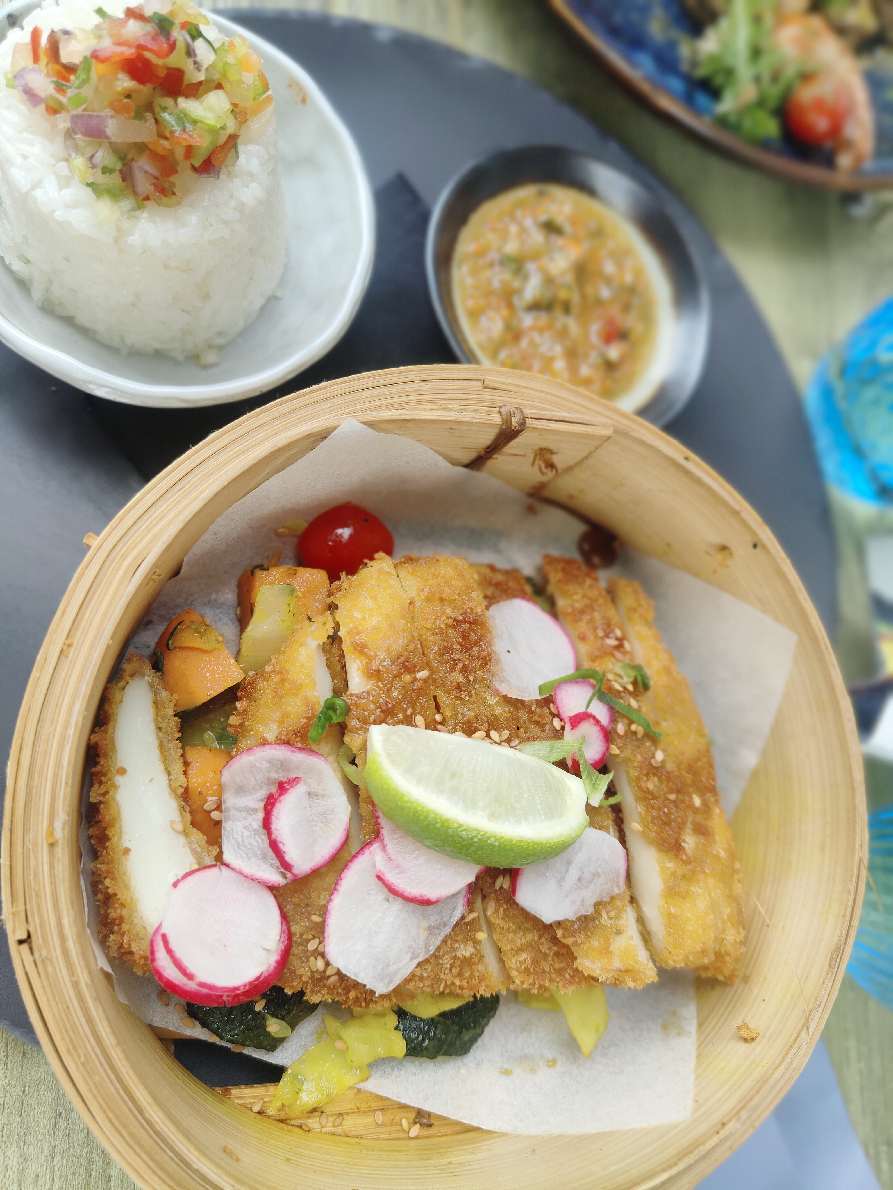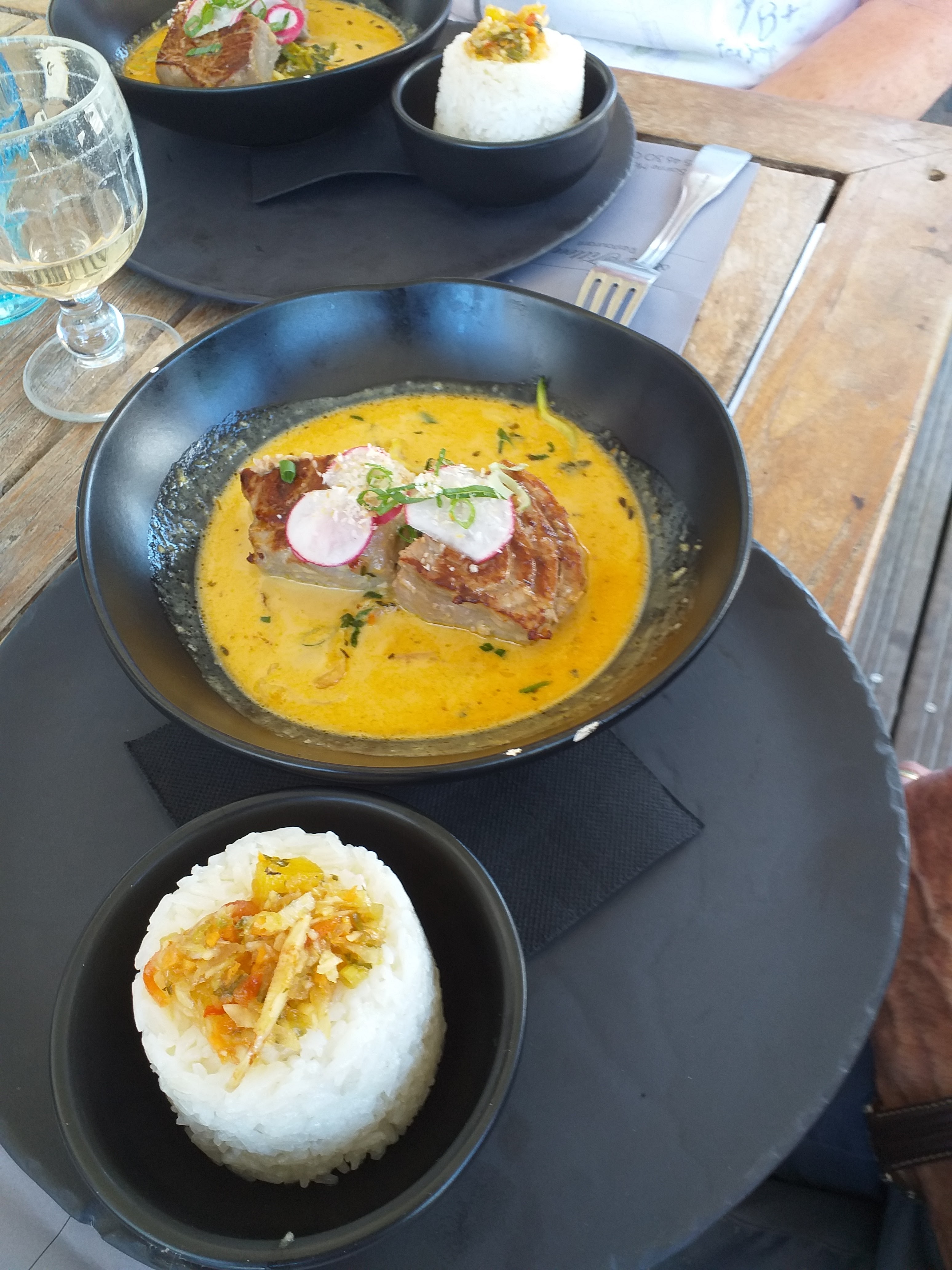 Très belle découverte autant pour le restaurant que pour la ville. Un choix de plat varié et appétissant. J’ai pris un thon au curry coco accompagné d’un riz thaï, je me suis régalée. Un dessert copieux mais pas trop sucré comme j’aime. Une ambiance de vacances. Un service comme il faut pas trop rapide ni trop lent. Un agréable moment.