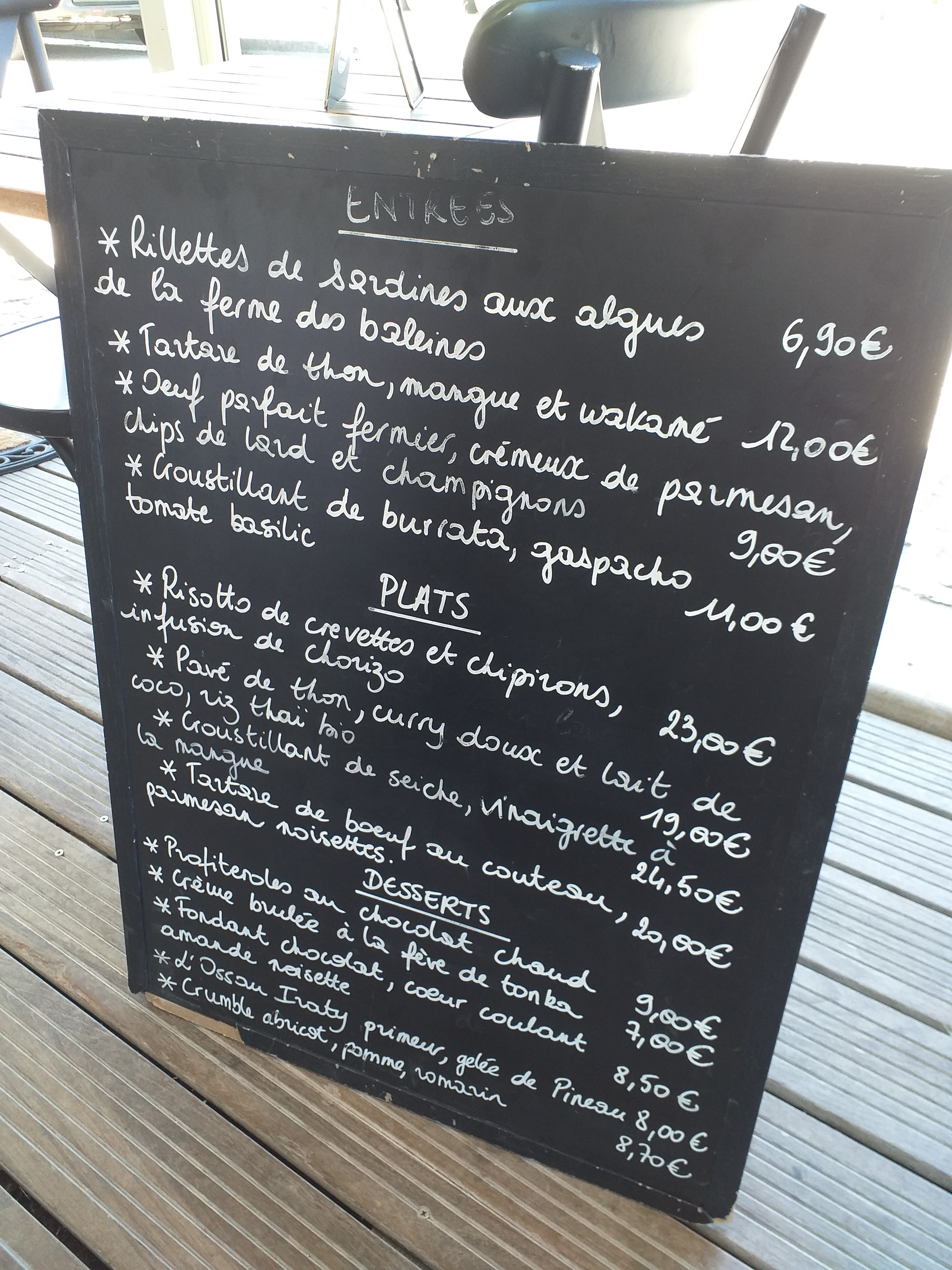 Repas sur place ce midi: TRÈS BIEN 💚 Service très rapide, serveuse agréable et souriante. Addition de 37€ sans apéro ni vin: planches à découper garnies d'un repas complet à 18,50€ pièce... Nous sommes restés 1h top chrono. C'était assez copieux, frais et bon. A refaire!!!