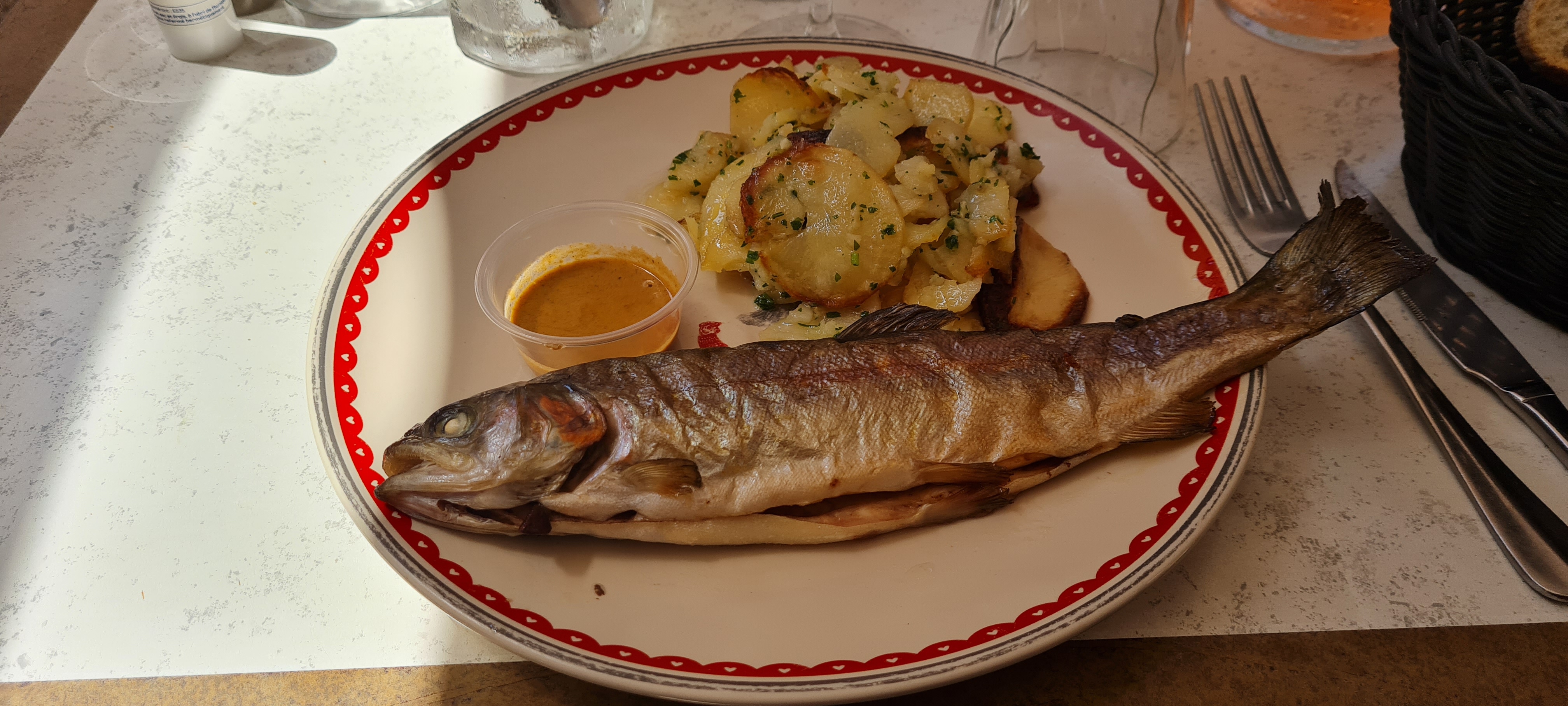 Portions très généreuses, en particulier pour la daurade ! Mention spéciale à la grosse profiterole qui était un délice !