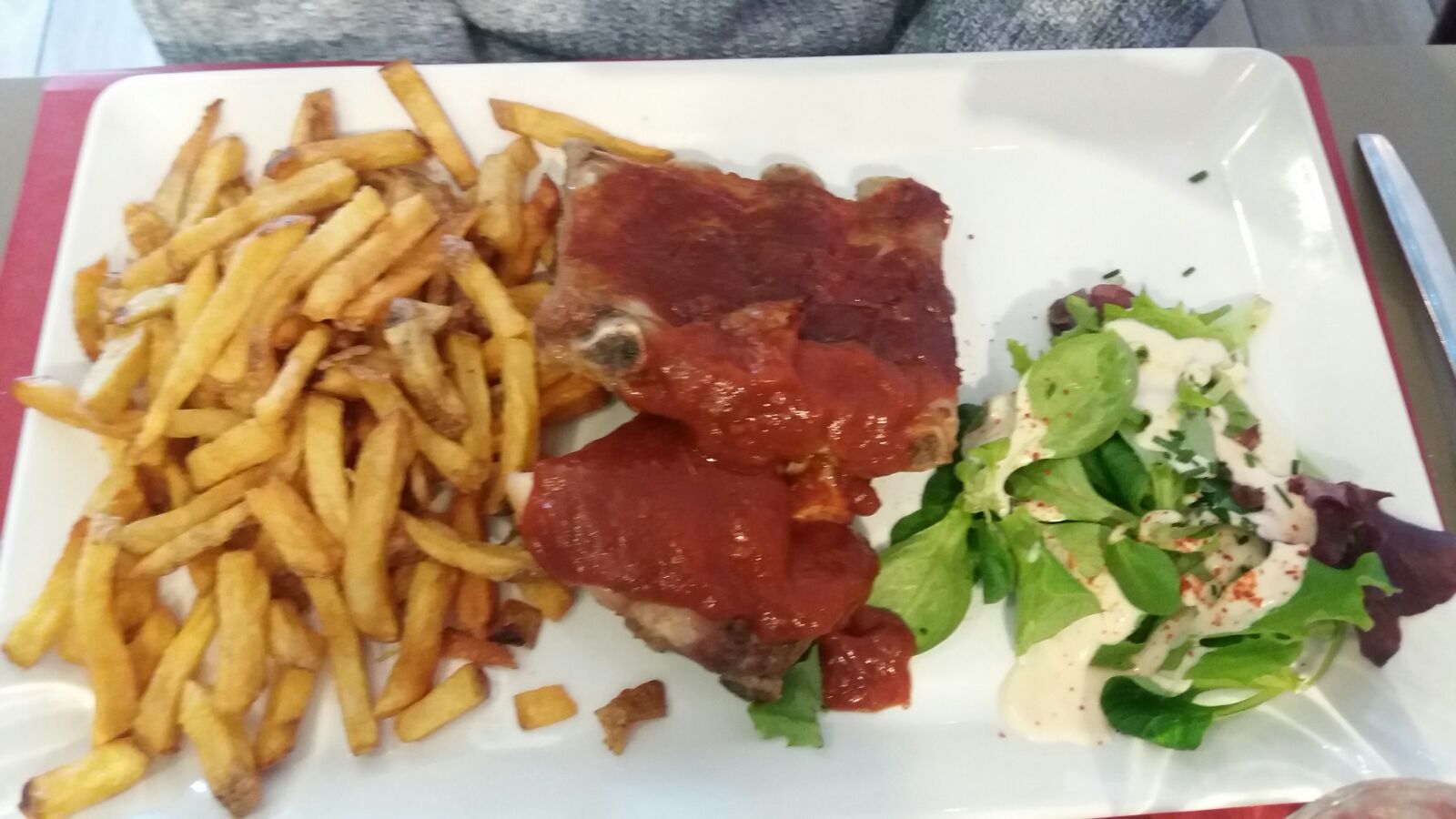 Déjeuner ce dimanche midi, un monde de dingue après un gros week-end, mais une équipe au top, sympa, généreuse et dynamique avec le sourire. Repas fluide Très bon plat bien garnis avec un très bon rapport qualité/prix. Des produits licaux, un sacres plus et frites maison. Nous avons passé un très bon moment.