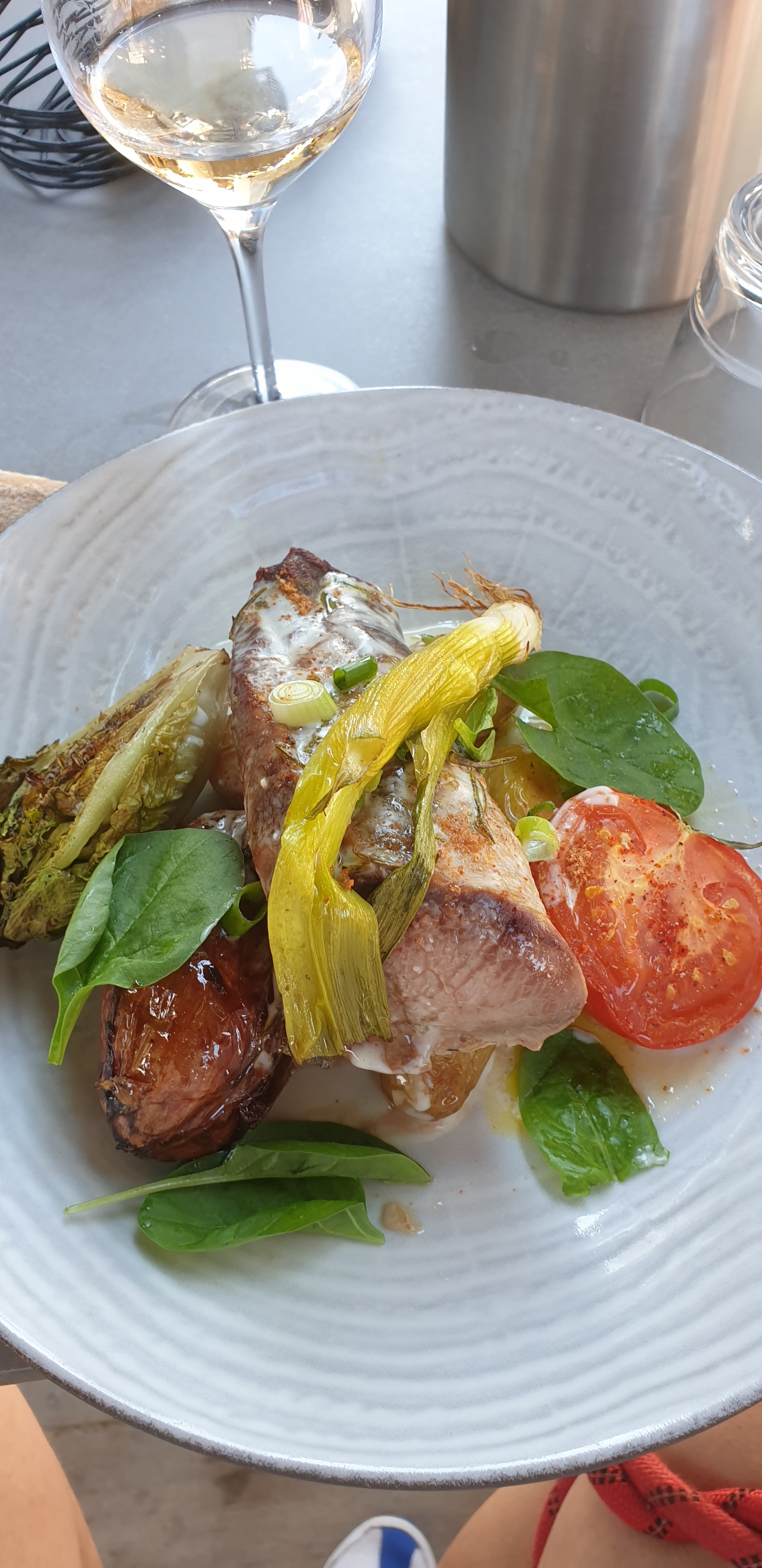 Un déjeuner entre collègues en terrasse au soleil. Le plus la vue sur la mer. On conseille le Côte du Rhône biodynamique. Le tartare Olive et tomme était bon mais sans plus. Aucun des hommes n'a apprécié le burger. Le service est agréable