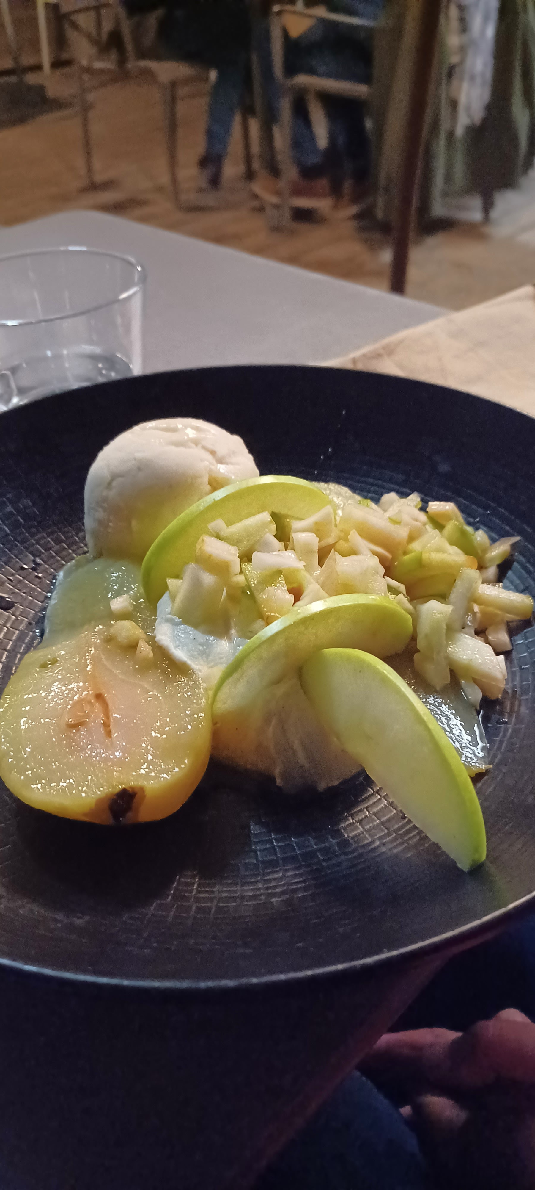 Très bien, dommage que l'on ne m'ait pas précisé que l'assiette apéro était si copieuse, ou alors il aurait fallu l'adapter pour une personne seule (payer pour n'en manger que la moitié, grrrr et ça fait du gaspillage (pas de proposition pour un doggy bag)