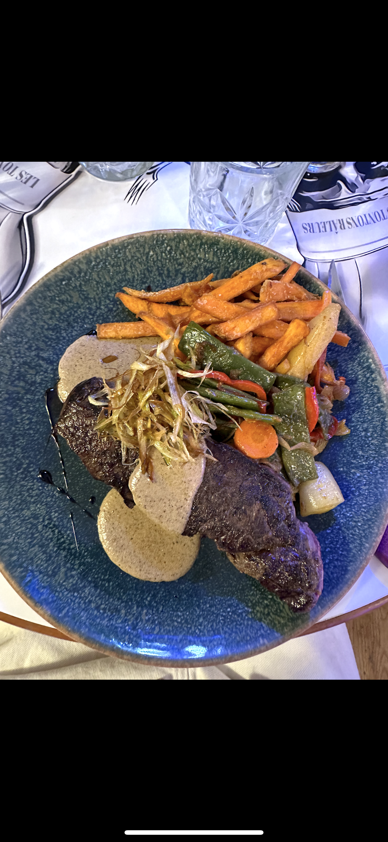 Découvert lors de nôtre séjour à cabourg , petit restau sympa avec des serveuses très agréables et gentilles, nous étions 4 et choisi trois plats différents chacune de nos assiettes ont eu du succès simple mais très bon, les frites de patates douces à tomber par terre 😉