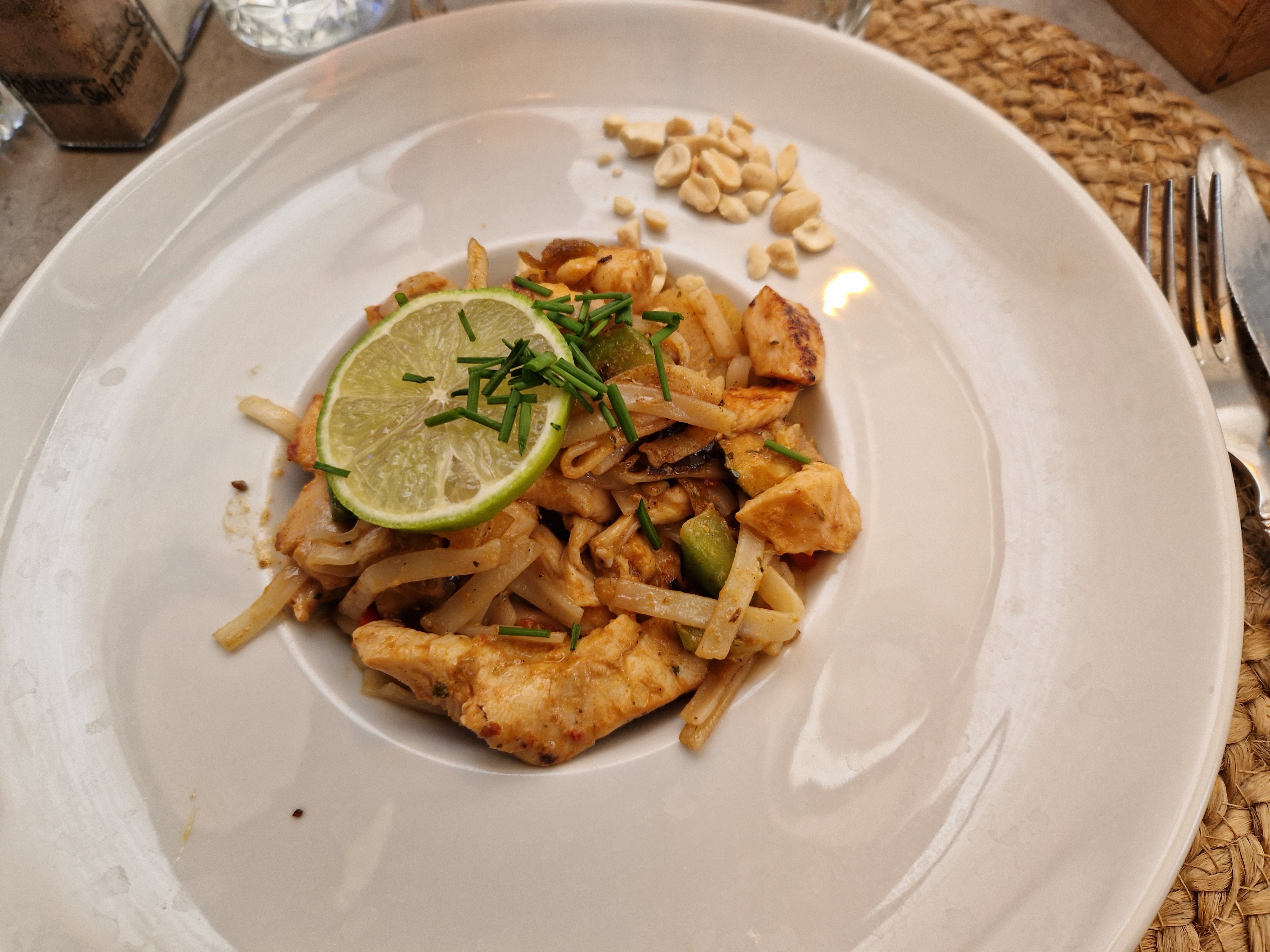 Pad thaï très décevant, sans saveur, crevettes minuscules avec des petits pois farineux. Je n'ai rarement mangé aussi mal. Le burger était bon apparemment, frite de patate douce maison.