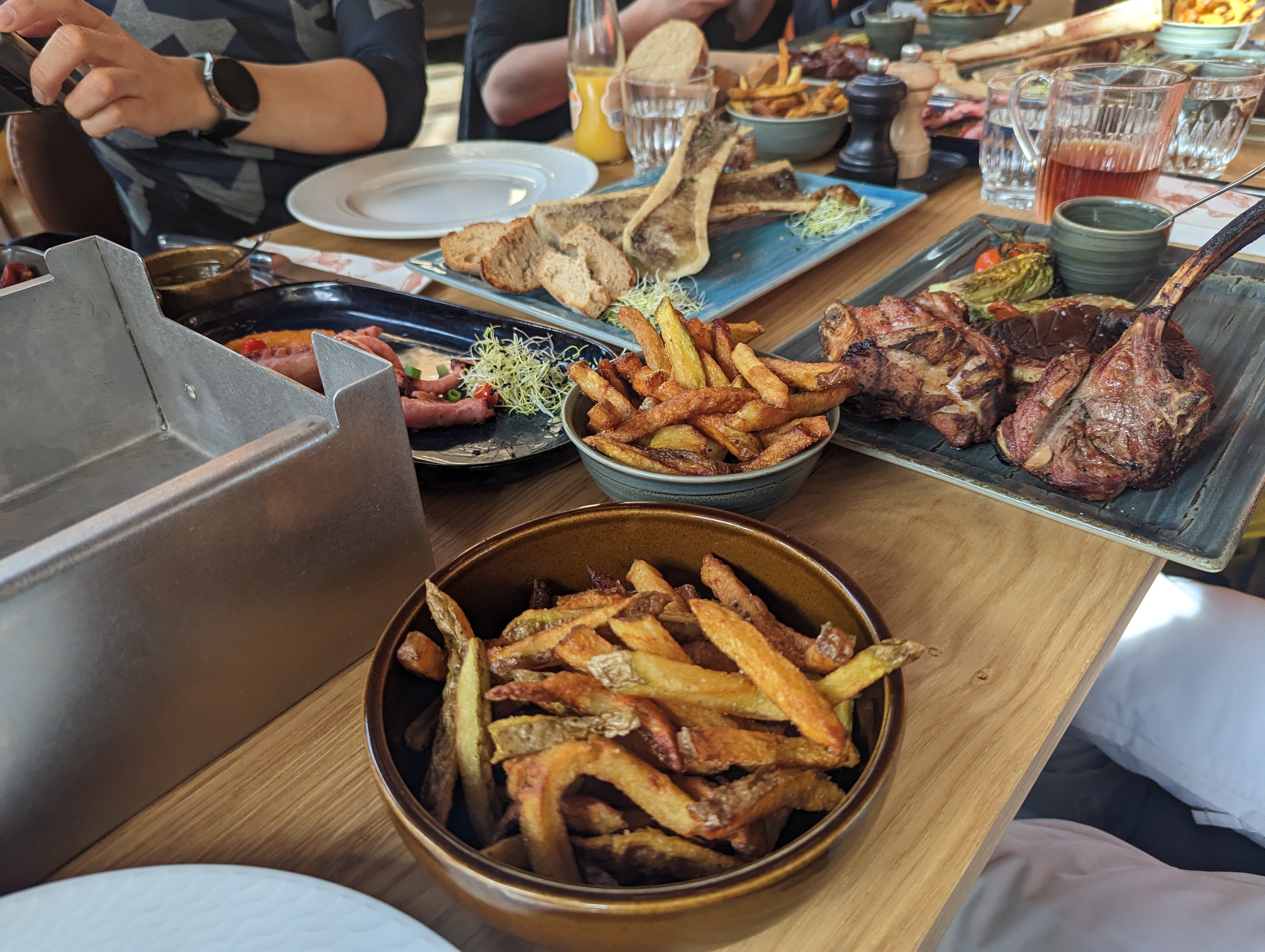 Excellente viandes! L’endroit où aller pour déguster des viandes cuites parfaitement à basse température, au grill et ou à la braise, le top si vous êtes amateur de viande rouge. Petit moment d’humour quand j’ai discuté avec le service du (deuxième) verre de Bourgogne qu’on me servait, qui n’était pas du pinot noir… verre ensuite remplacé non sans un petit débat oenologique (mon expertise cependant !). Sans rancune. Nous reviendrons