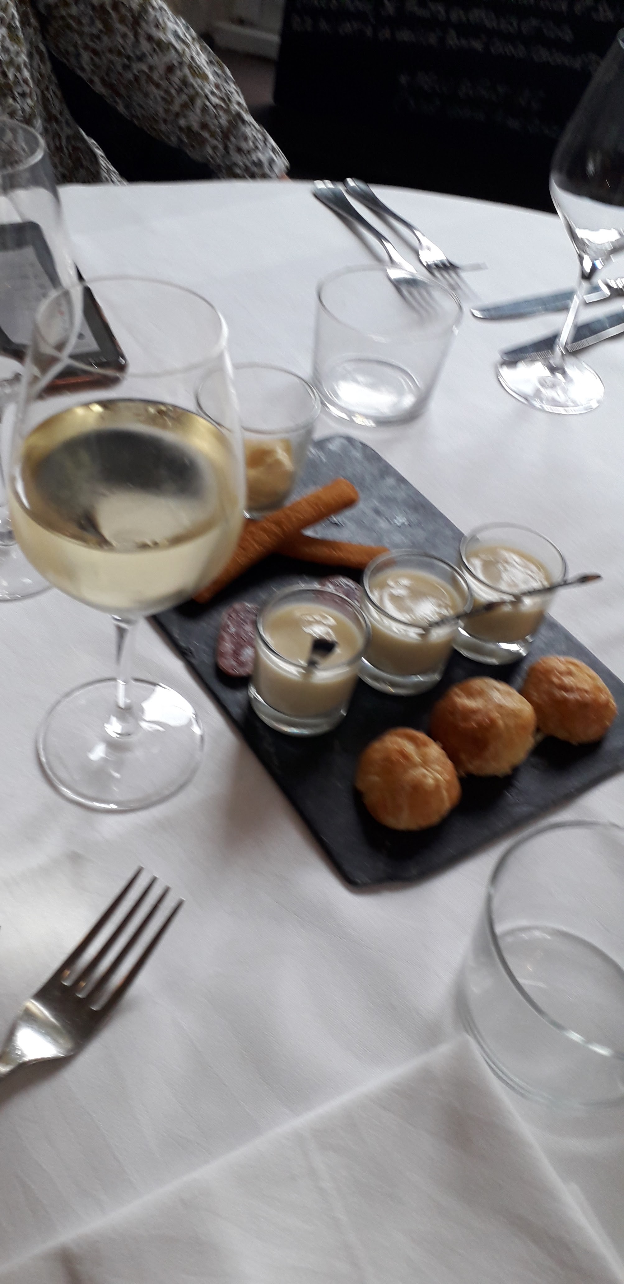 Restaurant dans le cadre agréable des bords de Loire. En entrée, j’ai choisi Panna cotta avec asperges. J’ai regretté que les asperges soient glacées dans doute sorties d’un réfrigérateur au dernier moment.Rien a dire sur le plat de veau à la cuisson parfaite ! Amis amateurs de truffe, le Brie truffé est décevant… Également trop froid ,aucune odeur ni goût de truffe. Le fromage manquait de mascarpone. (d’ailleurs y en avait-il ?) Un peu déçue sur l’ensemble, j’avais connu ce restaurant a ses débuts qui promettait une grande inventivité et une belle créativité