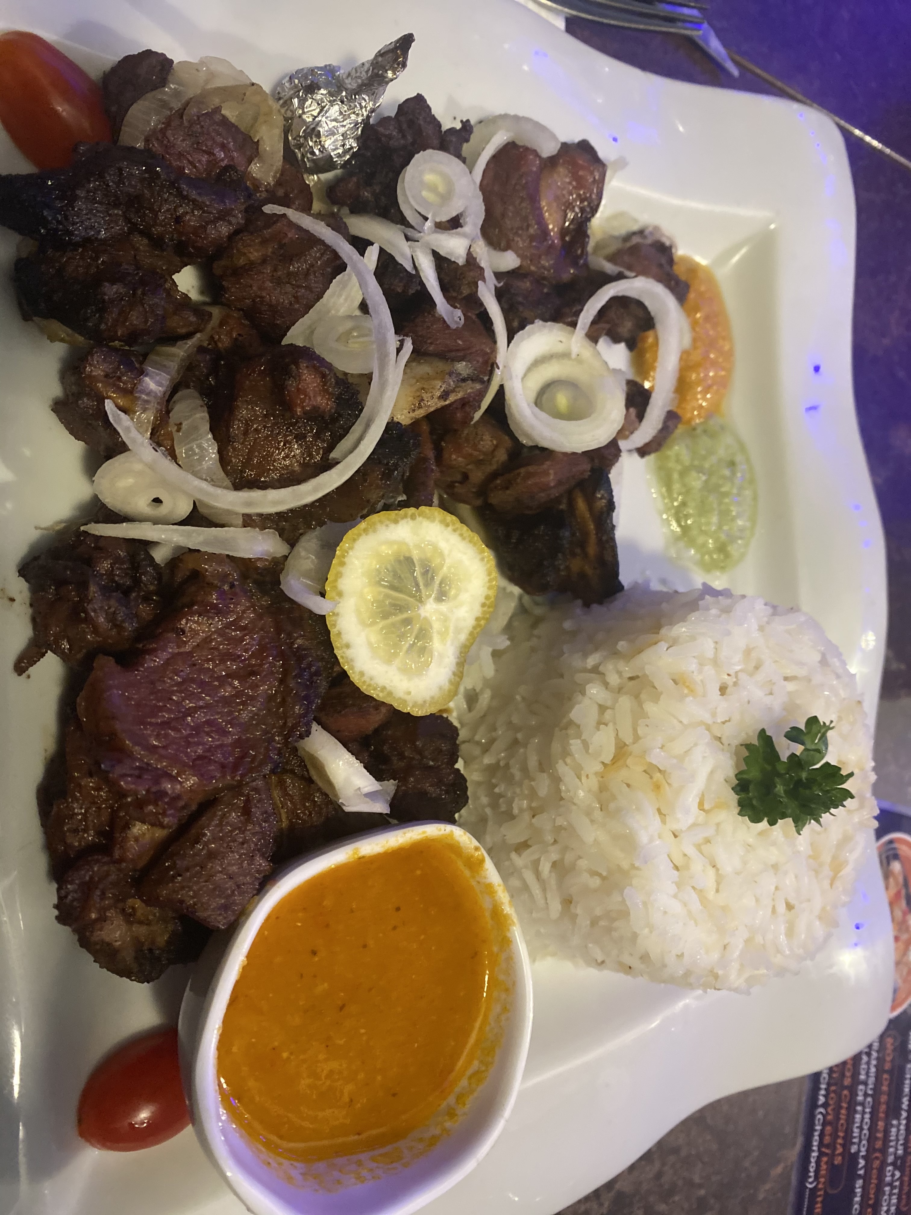 Très déçue de la nourriture : une bavette semelle (j’ai demandé à point), des insectes et du sable dans la salade (au moins c’est une vraie !). Et les plats d’à côté n’avaient pas l’air mieux…