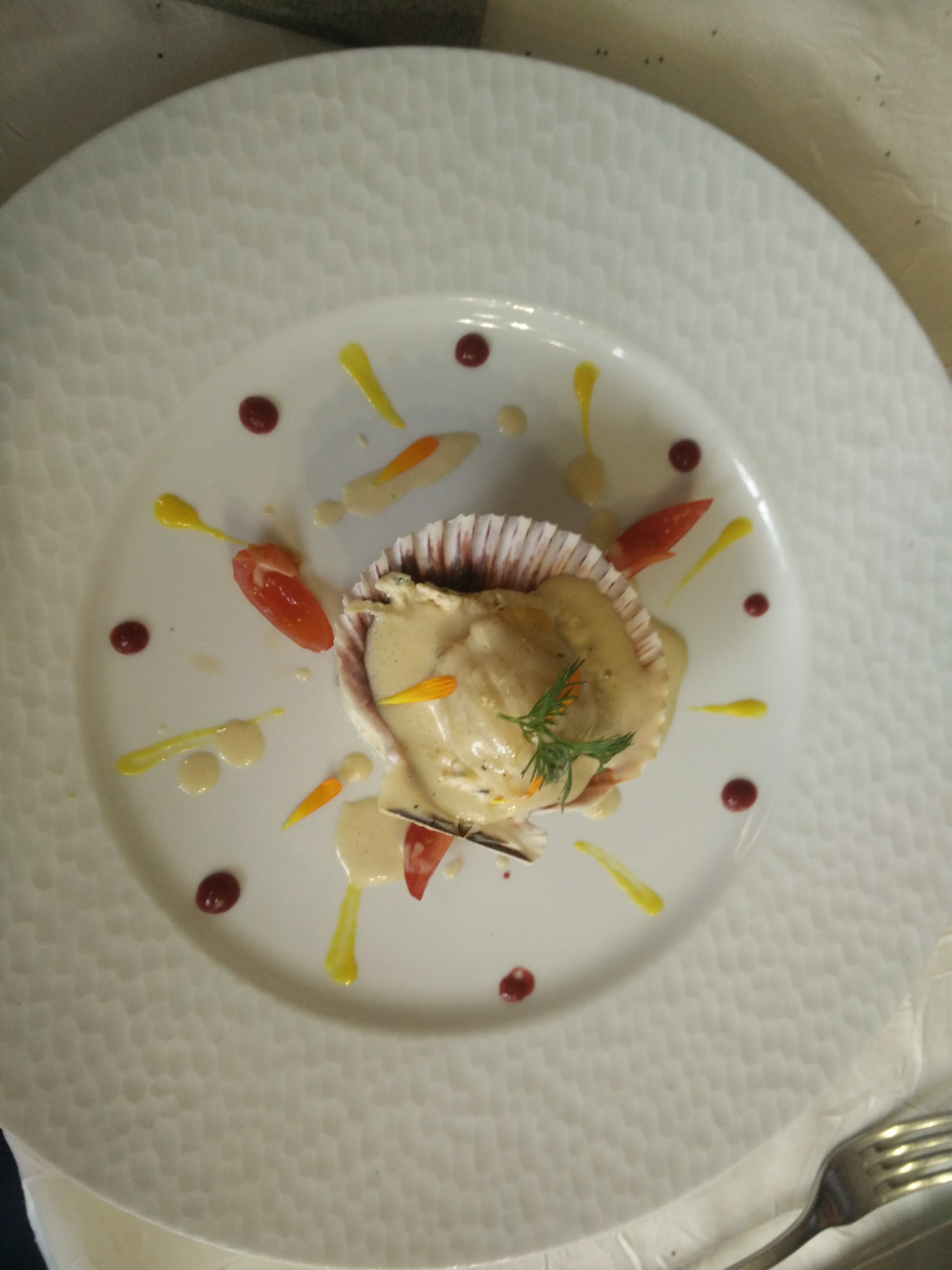 Très bon plat de coquilles St Jacques rôties par contre au dessert la tarte renversée aux agrumes est une mauvaise Tatin de pommes recouverte de mangue insipide… alors que spécifiquement j’avais demandé au serveur de quel agrume il s’agissait et qu’il m’avait répondu du citron. J’oubliais la petite boulette de glace citron vert… ouf une touchette d’agrume. Je n’ai pas mangé mon dessert en plus j’ai découvert la queue de la pomme sous la mangue 🫤
