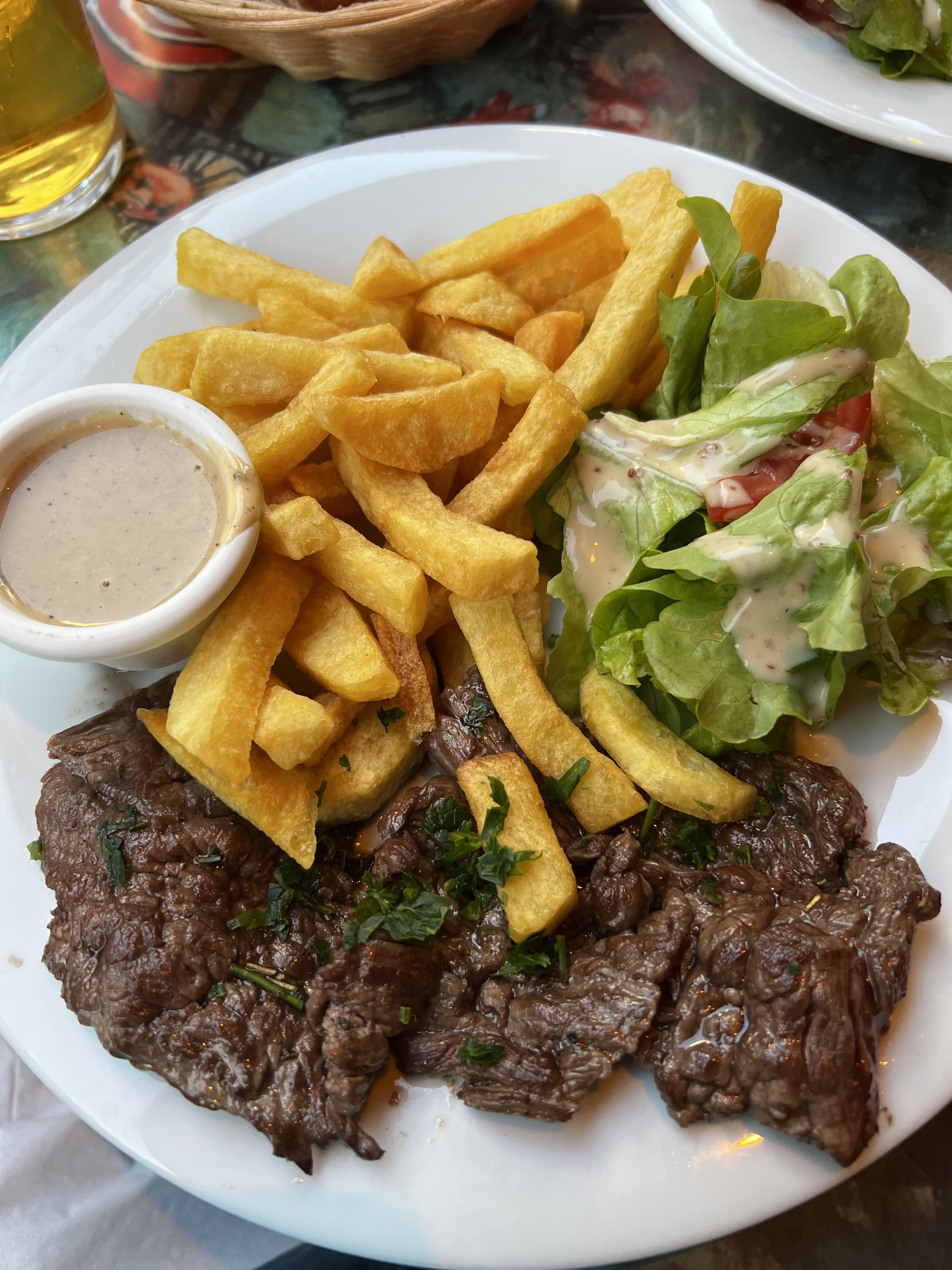 Les plats sont bons (cuisine de bistrot banale) mais c’est surtout l’ambiance ici qui nous pousse à revenir car les serveurs sont très sympathiques.