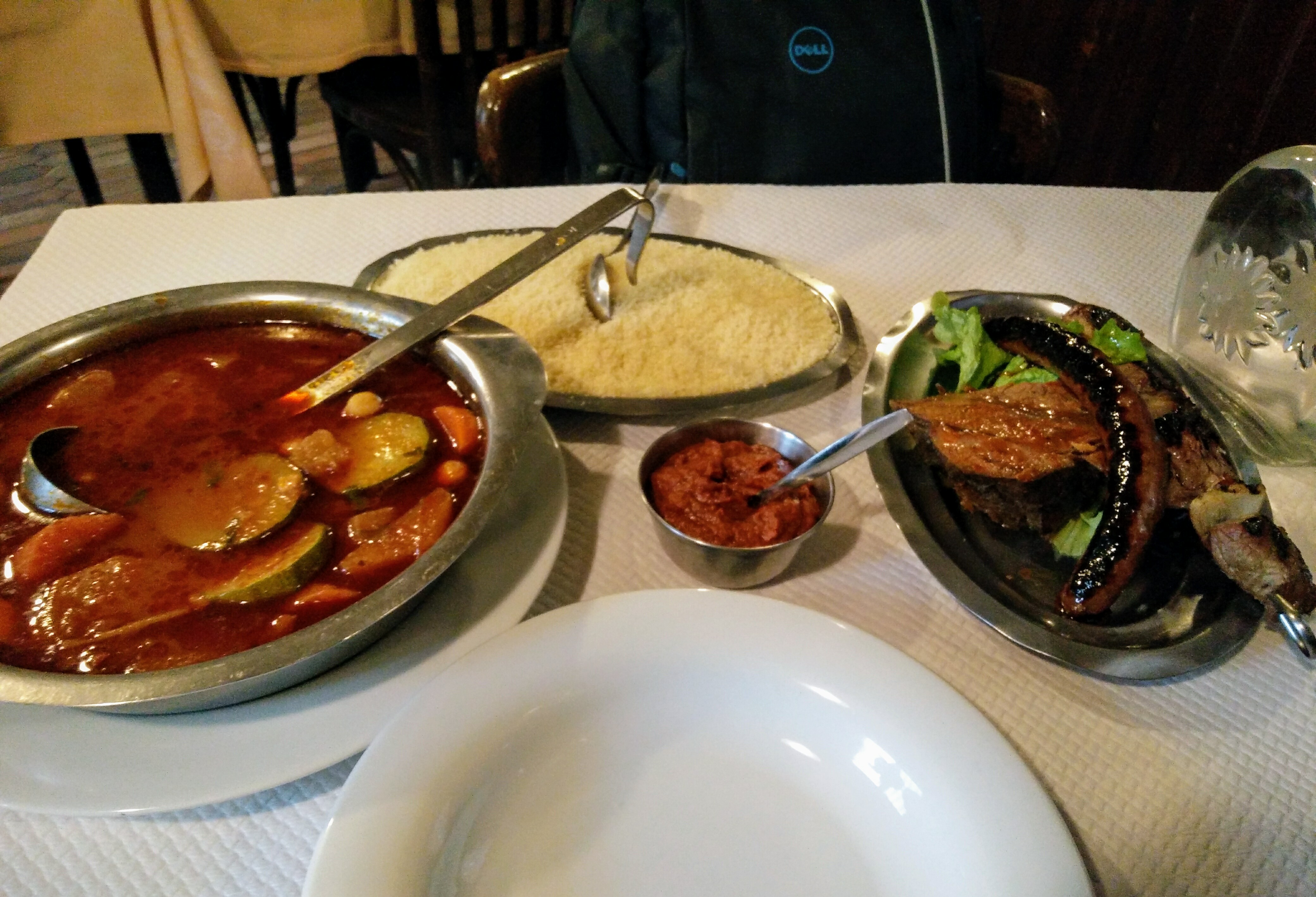 Ambiance convivial,couscous assez bon mais le bouillon manque de goût.