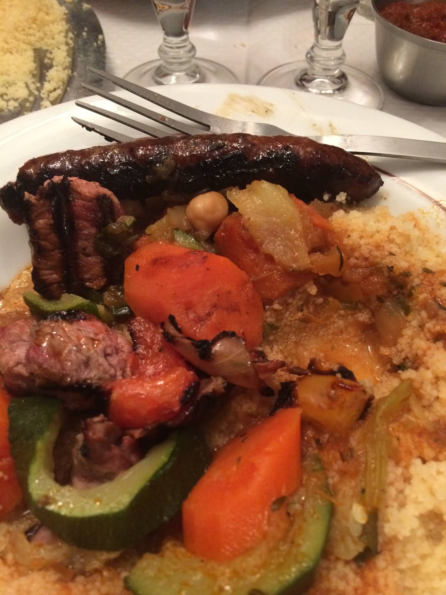 Mousse au chocolat incroyable, couscous royal et agneau tendre a souhait. Vivement recommandé