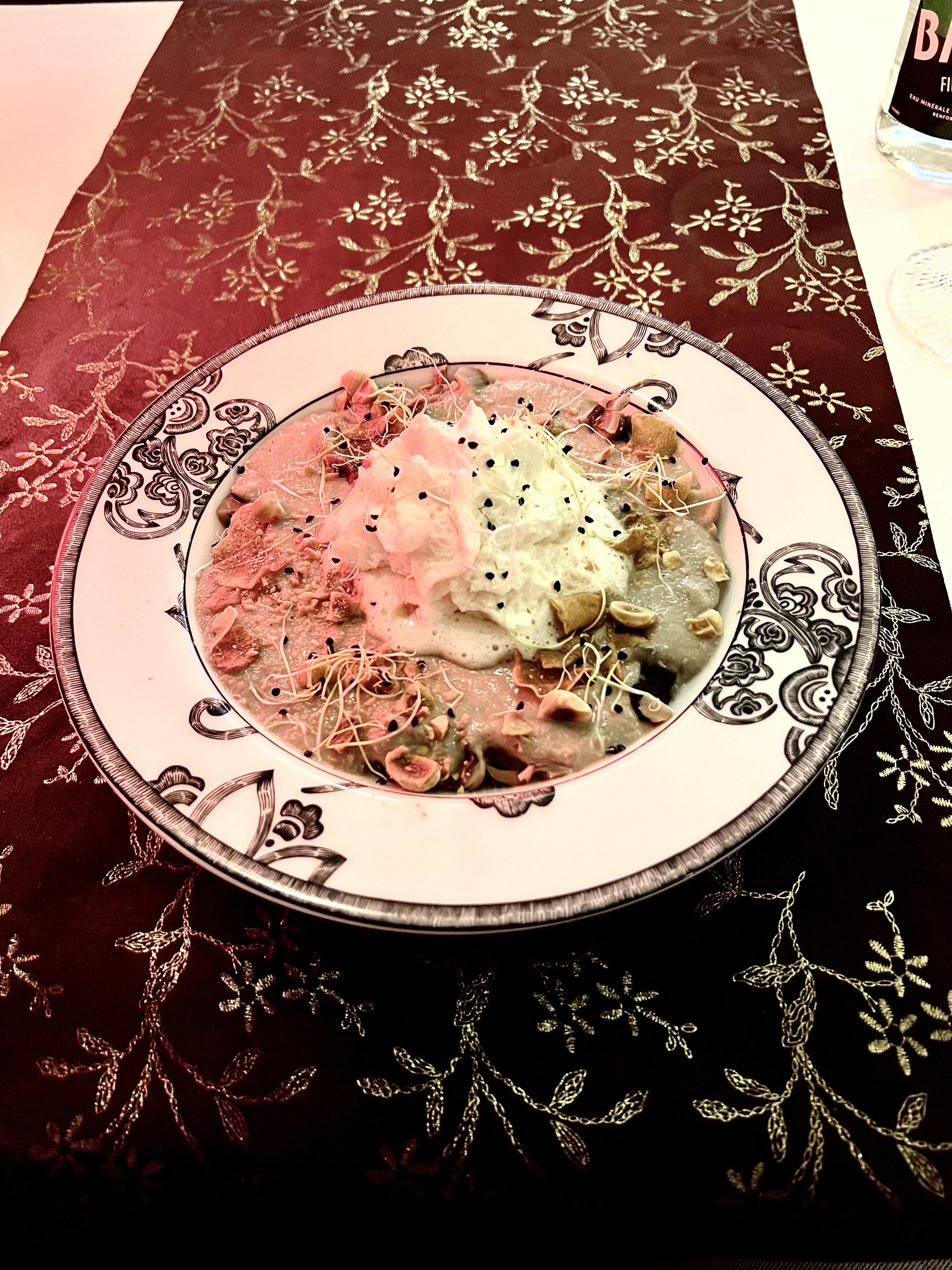 Restaurant chic et feutré,service très professionnel et discret. Menu parfait,très équilibré, belle présentation des assiettes, savoureux. St Emilion grand cru pour accompagner l ensemble, juste impeccable !