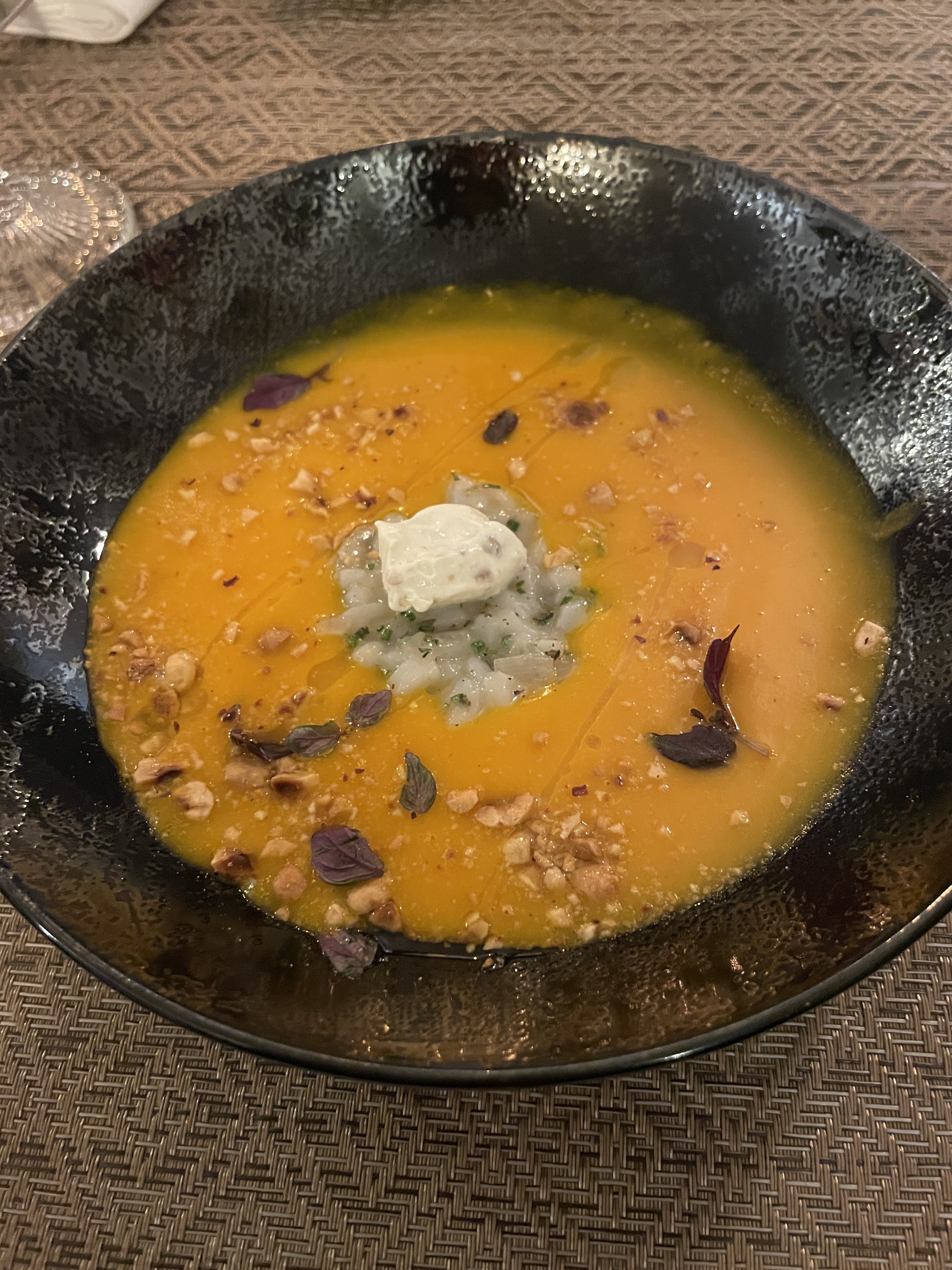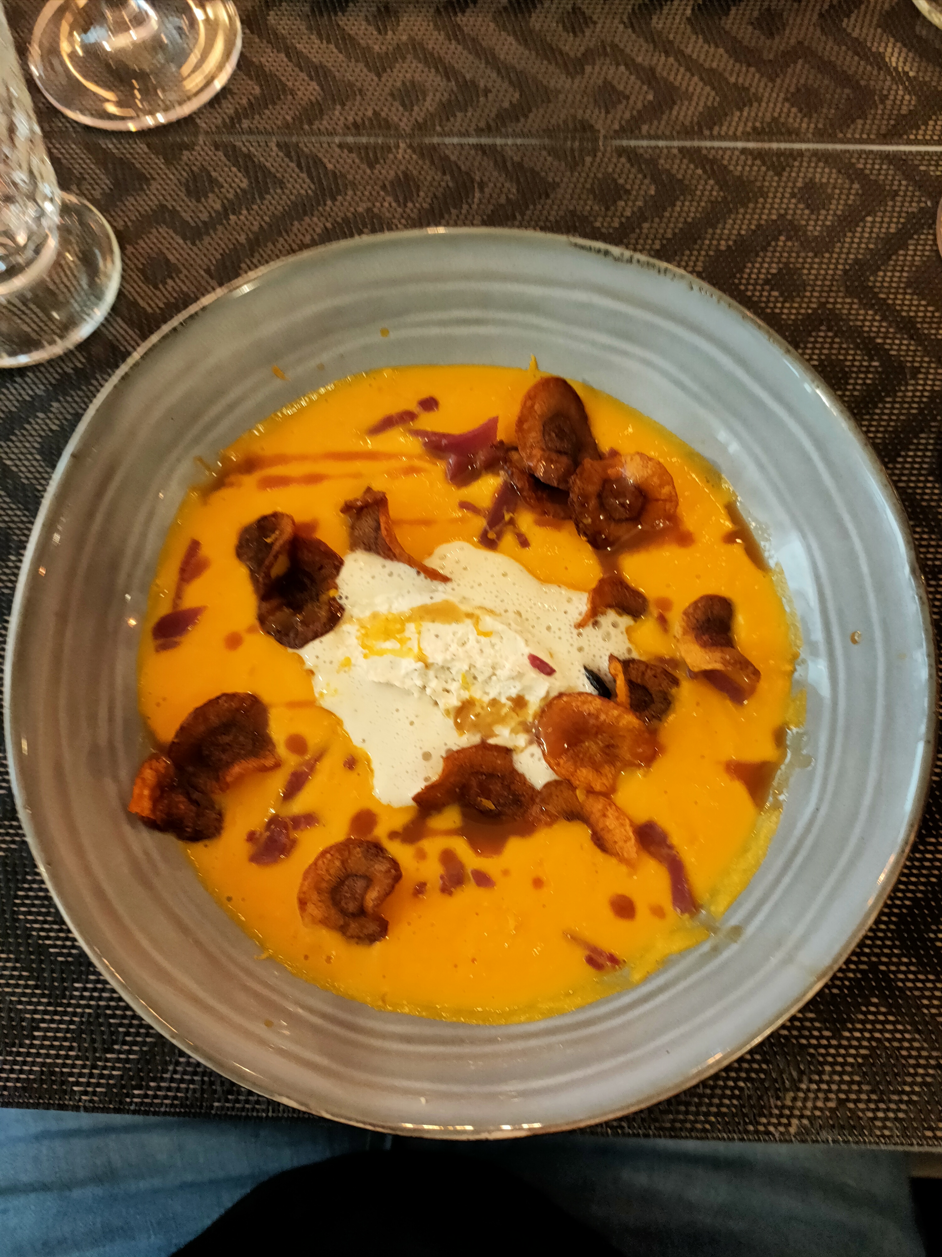 De mon arriver j’étais très bien accueillie. L’ambiance est agréable, avec musique de fond pas forte, et la décoration donne une sensation intime. Les plats sont saisonniers. En entrée j’ai pris la veloutée des champignons et en plat principal les saints jacques avec risotto. Ils étaient délicieux, les saveurs et textures, la présentation, tout était excellent. Je recommande absolument