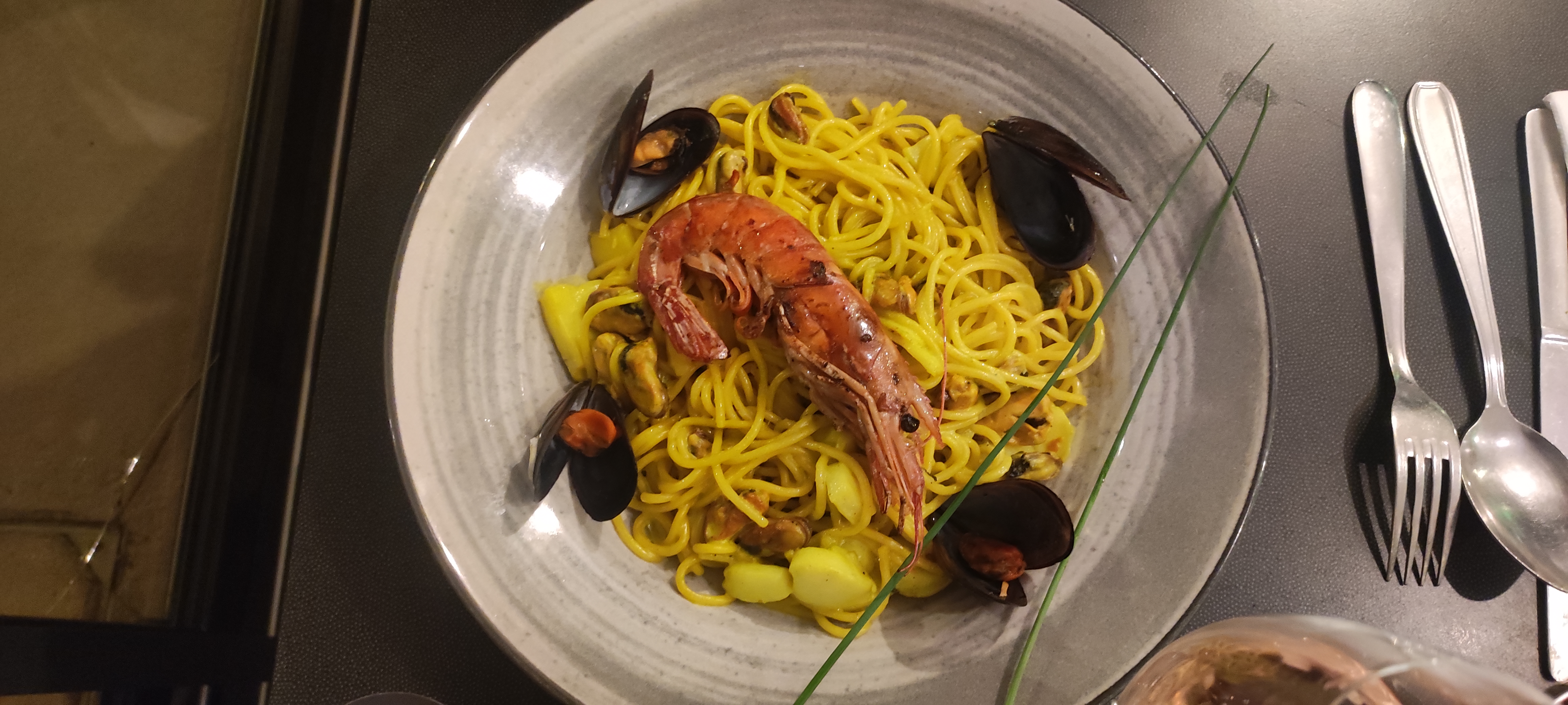 Bon repas dans l ensemble, lasagnes, pates bolognaise et pâtes aux st Jacques très bonnes. Un peu déçue de ma salade, une seule grosse crevette, de la seiche pas prévue au programme...c était bon mais pas ce que j attendais le personnel est souriant, le service est rapide malgré le monde. Je recommande