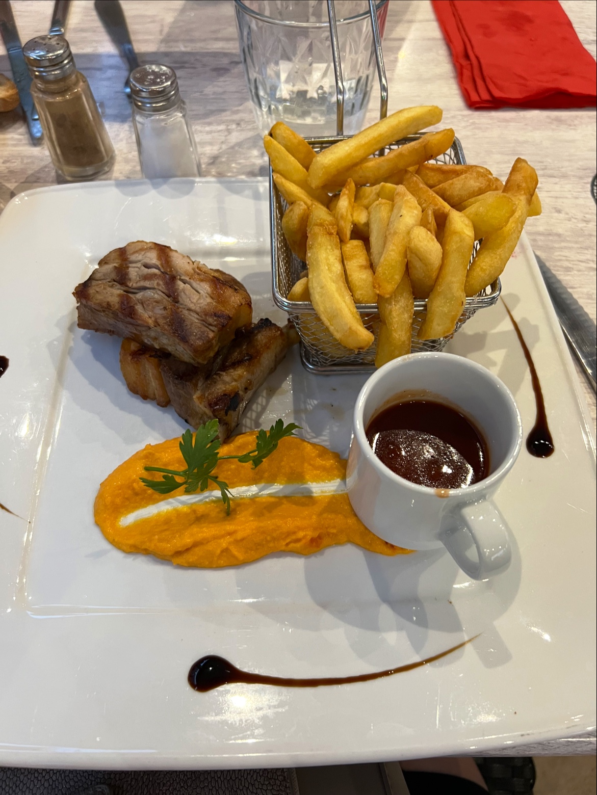 Mais quel restaurant incroyable, des serveurs qui sont plus qu’agréable, souriant, accueillant. Nous avons passée une semaine à valras, en allant manger uniquement dans ce restaurant!! Une cuisine excellente, propreté irréprochable, je vous le conseil à 300% A bientôt j’espère!!! Faux filet, pâtes carbonara, ribs de porc purée de carotte frite/ pâtes, salade cesar et salade chèvre chaud, burger, incroyable un sans faute!