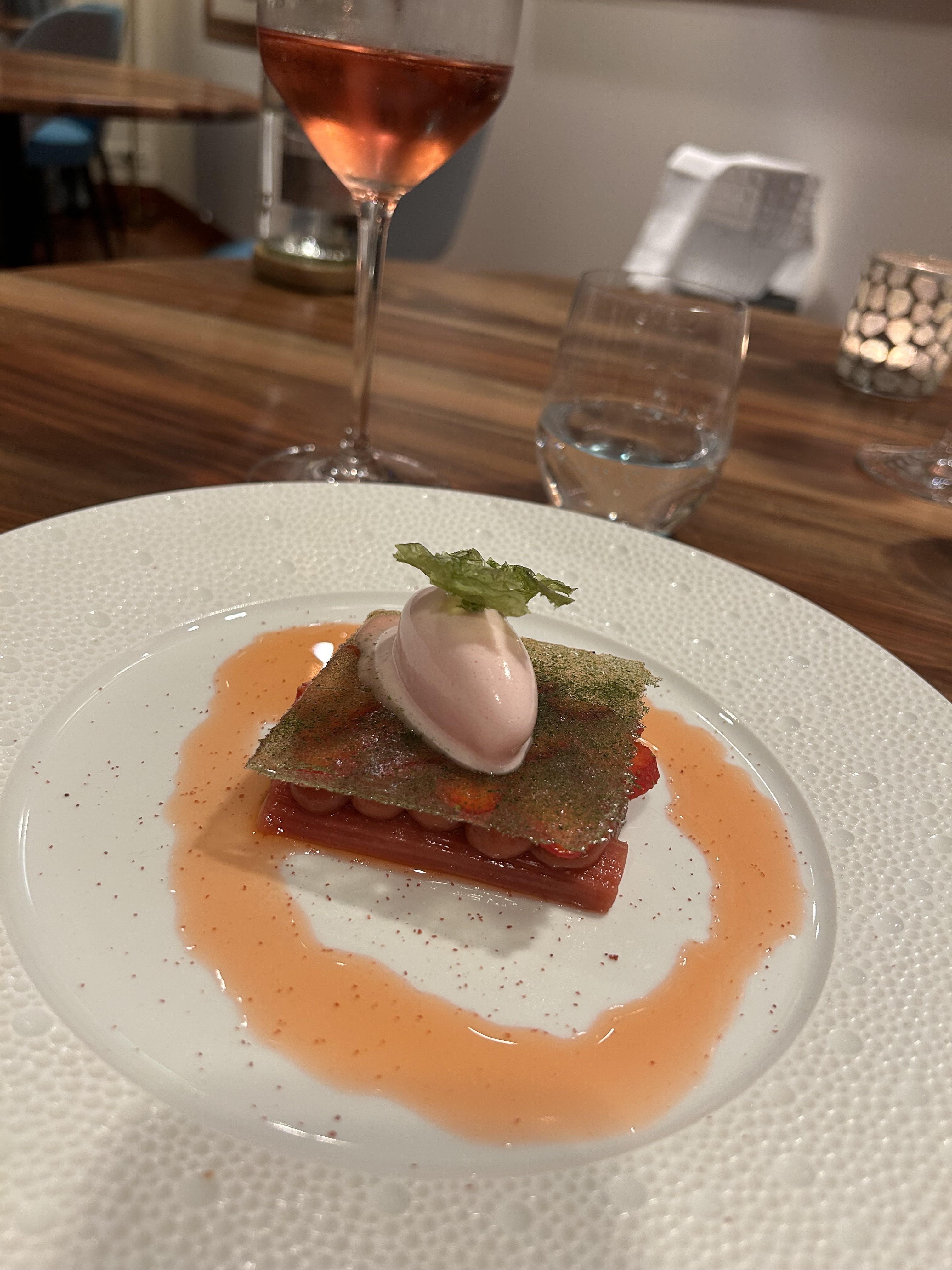 Un restaurant exquis, élégant mais décontracté et pas étouffant. La réservation en ligne était déjà très simple et claire : il n'était pas nécessaire de déposer une carte de crédit ni même de faire un dépôt, comme on le voit parfois dans d'autres restaurants similaires. La veille du dîner, j'ai reçu un autre e-mail de rappel avec un lien pour confirmer ou annuler le rendez-vous - j'ai trouvé que c'était un excellent service ! Le personnel était extrêmement professionnel et sympathique et la décoration du restaurant était de bon goût et sophistiquée. Nous avons eu le menu Les Trois Rocher, tous les plats sauf le dessert étaient avec du poisson. La nourriture était un régal pour les yeux et le palais, les raviolis à la langoustine étaient tout simplement fantastiques. L’accord mets et vins était rafraîchissant, surprenant et très harmonieux. Seule la quantité de nourriture était un peu élevée, avec les deux plats principaux de filets de poisson, un seul au lieu de, par exemple, 2 filets de Saint-Pierre aurait suffi - ou vous pouvez simplement prendre le menu avec moins de plats. Bref, une superbe soirée dans une ambiance parfaite. Vous devriez absolument vous faire plaisir. Nous avons définitivement trouvé le prix d'environ 130 euros pour le menu sans vin raisonnable et approprié. Si nous étions à nouveau dans la région, nous y retournerions.