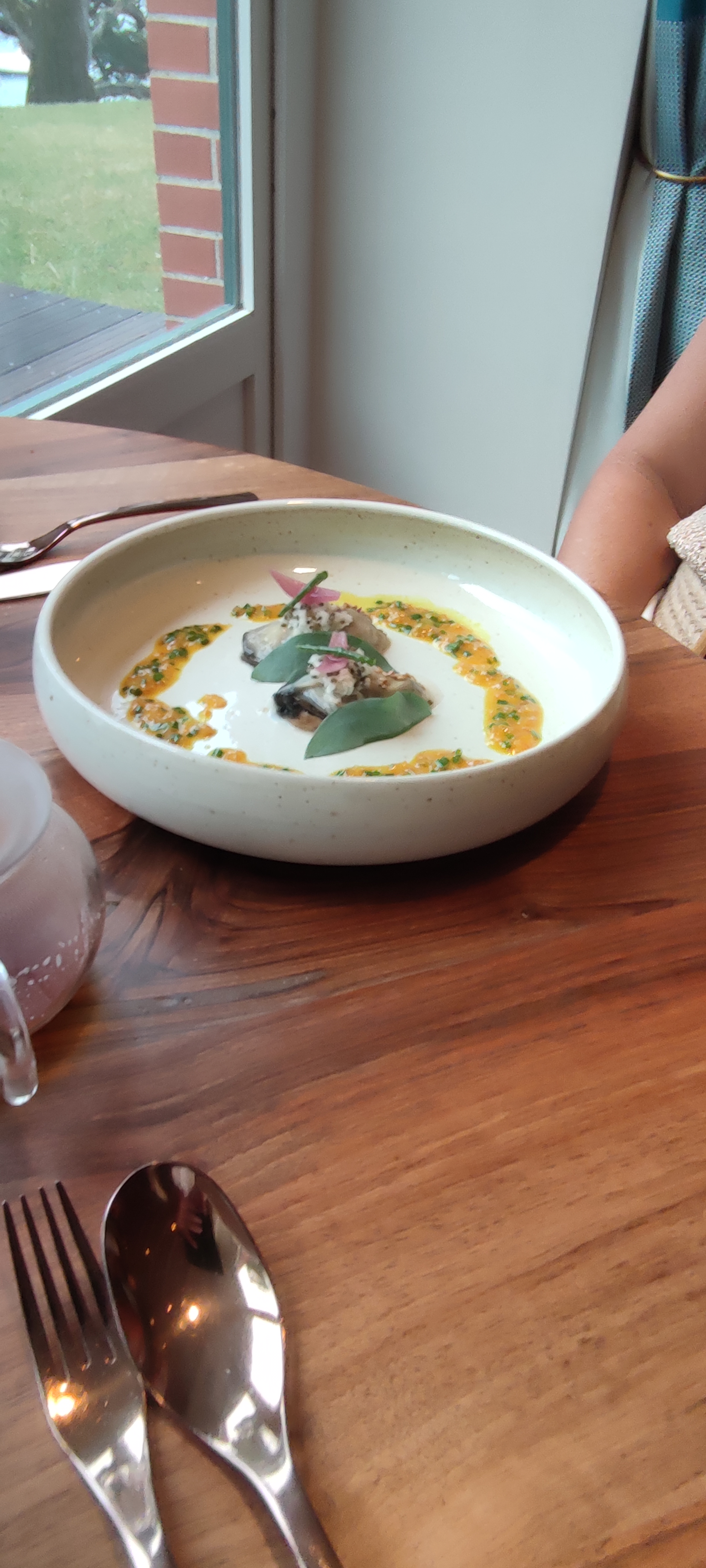 Très belle demeure avec beaucoup de charme et cette terrasse au bord de l'eau où on savoure une boisson alcoolisée ou pas. Côté cuisine les plats étaient délicieux et d'une finesse au palais c'est une belle découverte. Le service est très professionnel et souriant agrémenté d'une explication de chaque plat présenté. Une belle adresse.