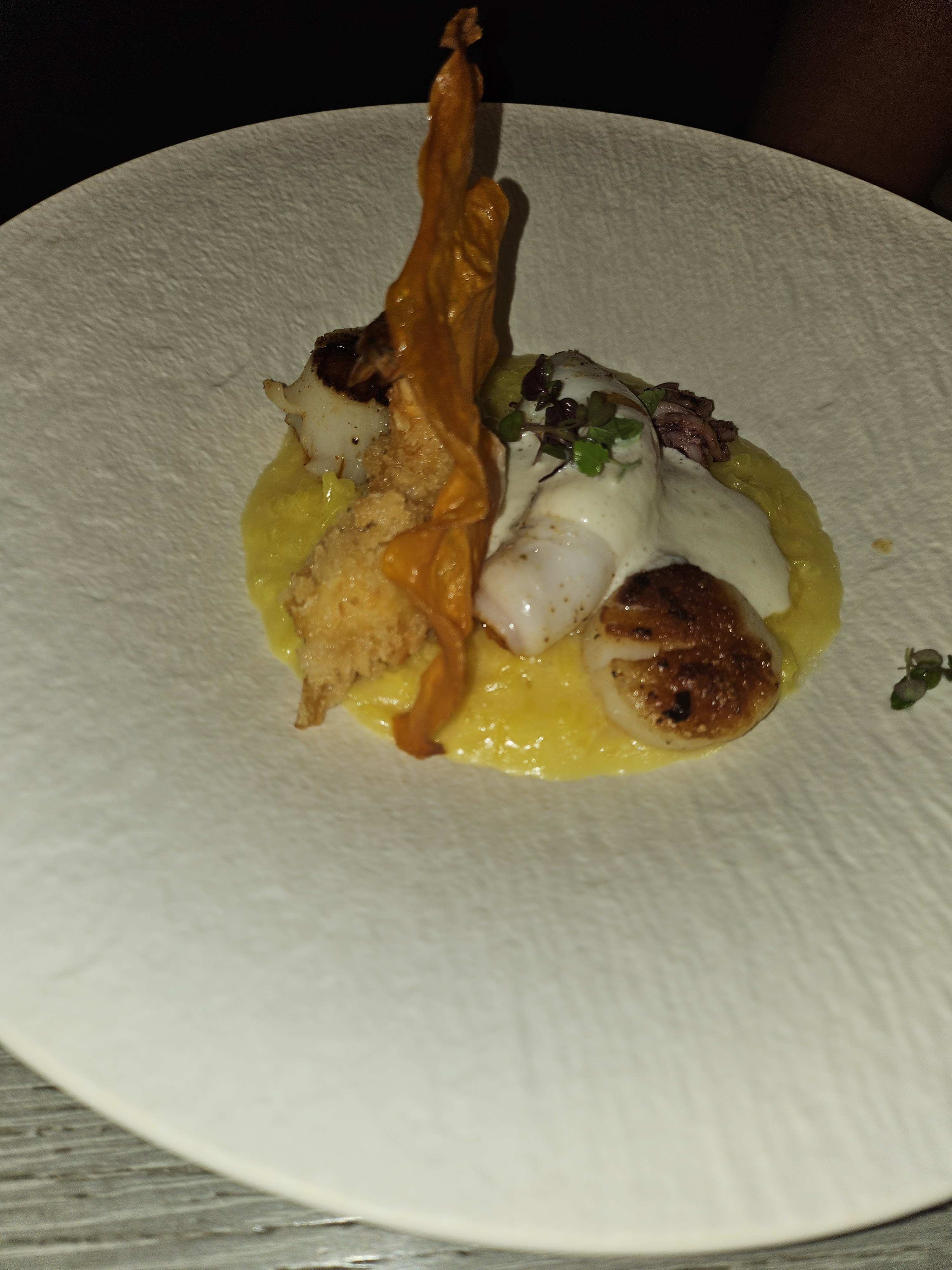Au top du top !!! Très raffiné... le mélange subtile entre plusieurs produits tels que ma passion et la st Jacques !!! Un délice !!!! Les serveurs sont vrmt sympathiques et le cadres vaut le détour... rapport qualité prix au top pour des produits frais et de bons conseils ... tombé sous le charme de ce resto ... rdv l année prochaine c est sur 😍😍
