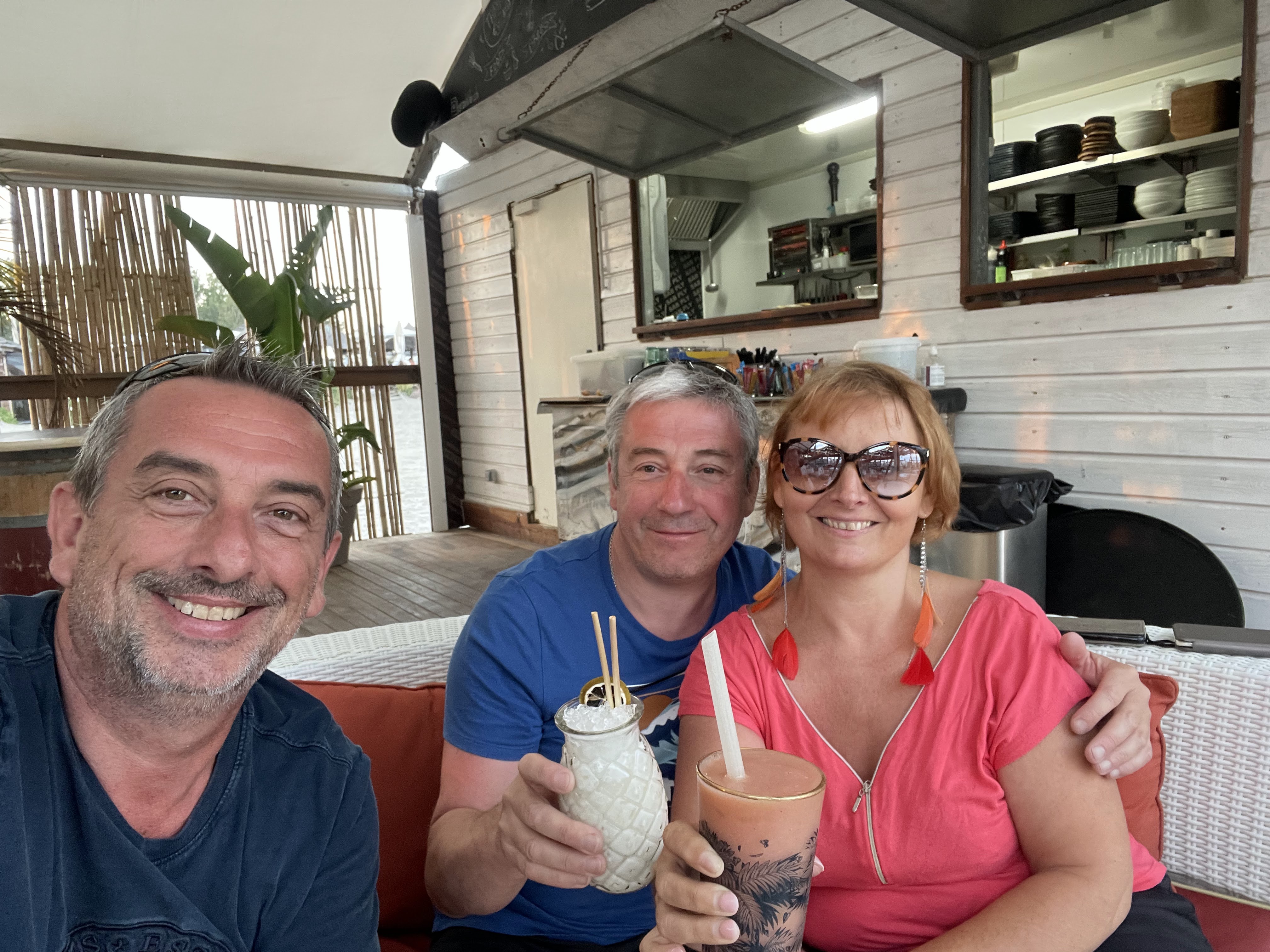 Nous y sommes allés trois fois entre amis et c’était toujours parfait, les plats étaient très bons, le service parfait et le cadre magnifique : directement sur la plage !