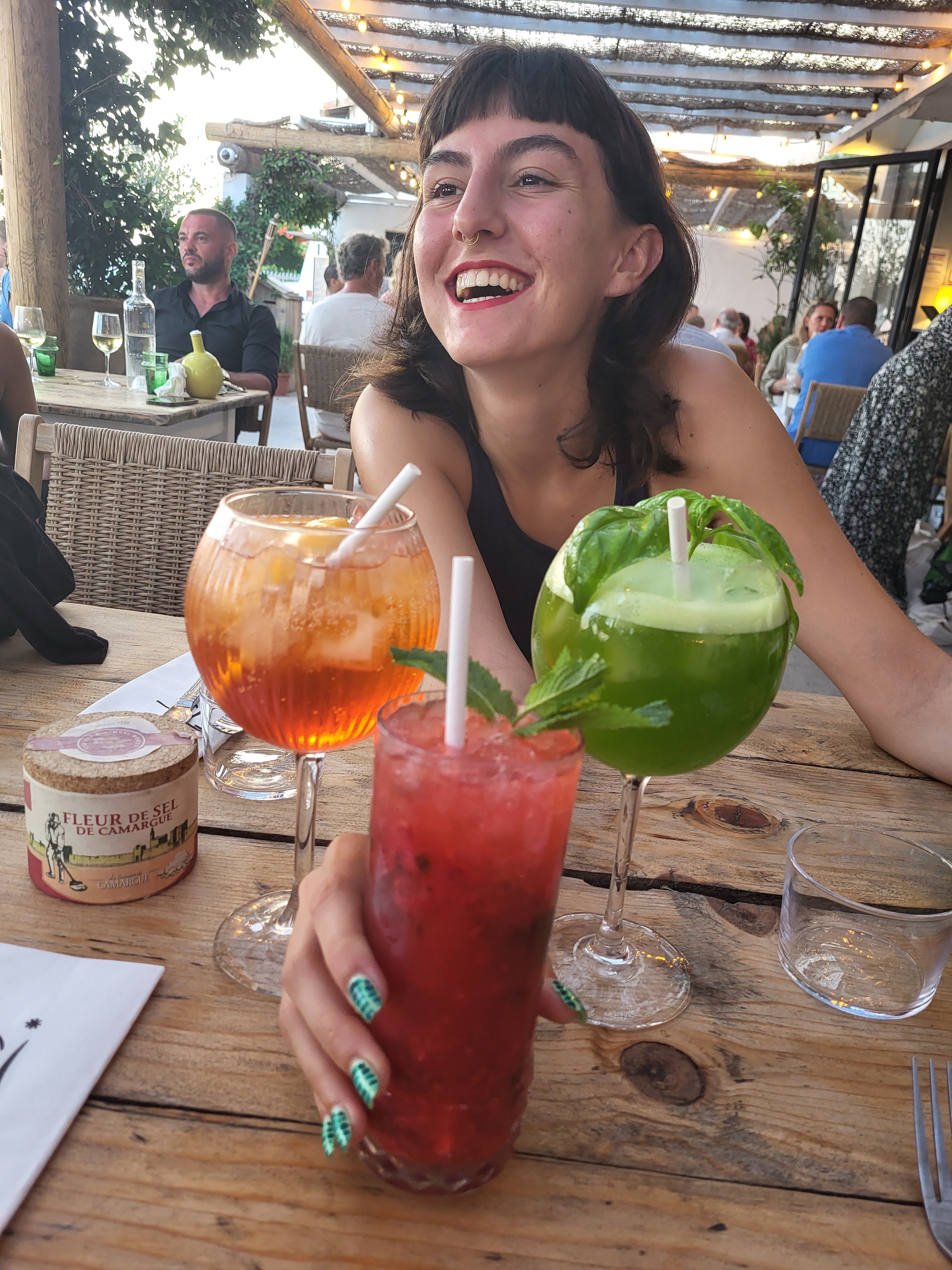 Repas très peu copieux, la gardiane de taureau avec beaucoup de sauce et deux minuscules morceaux de viande, Max 50g en tout et deux cuillères à soupe de riz, une arnaque pour le prix 17 euros. Cherchez la viande, il n'y en a quasi pas! Pour mon mari, le ceviche de Dorade à 22euros, idem servi sur une mini planche 15 cm sur 4 cm sans accompagnement même pas une salade, 22 euros ! À fuir, attrape touristes parce-que la terrasse est belle !