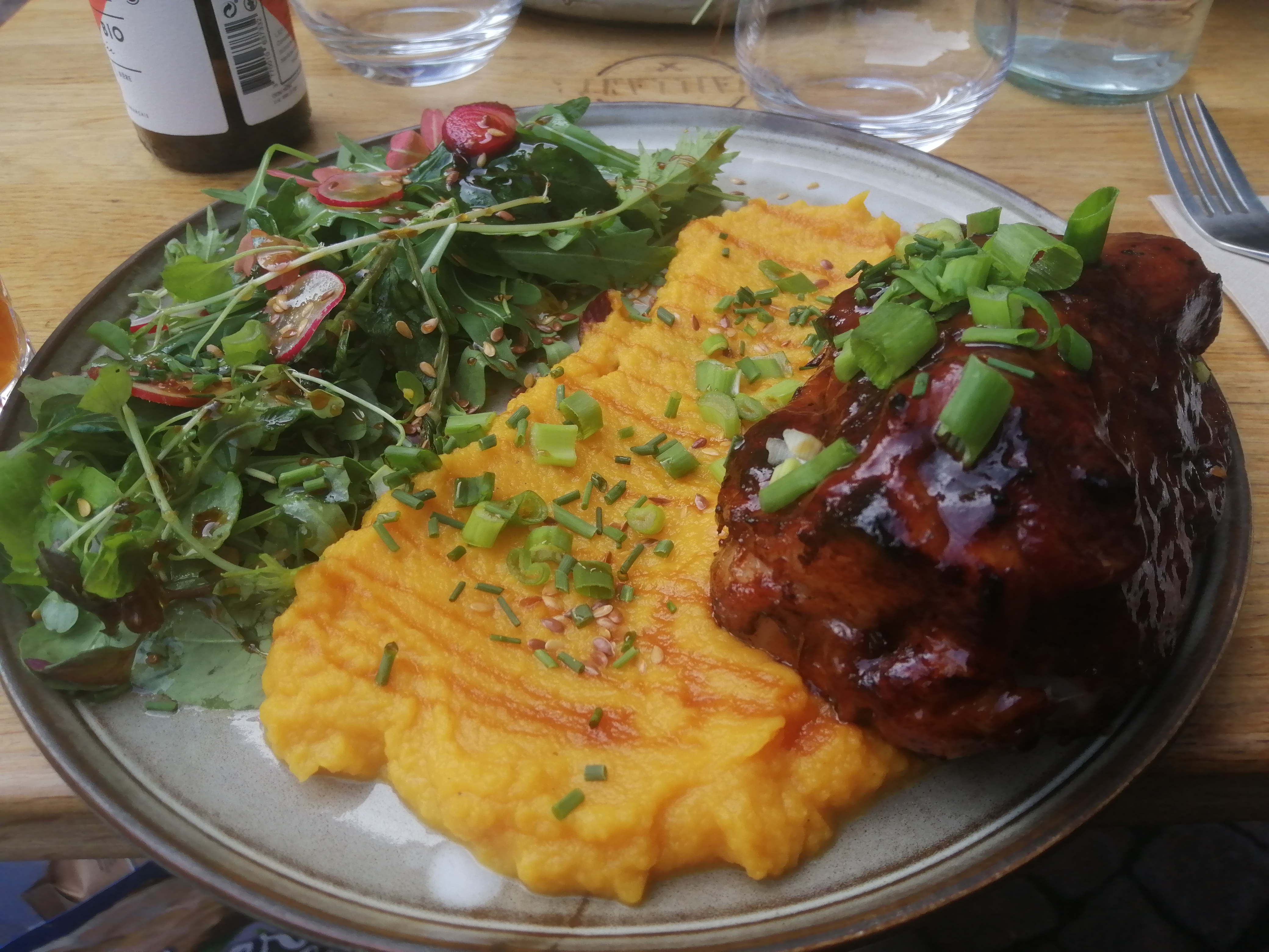 Bistrot très sympathique, des portions correctes! Nous avons pris viande et poisson, les deux plats étaient très bons. Les prix un peu élevés mais correspondent à la localisation!