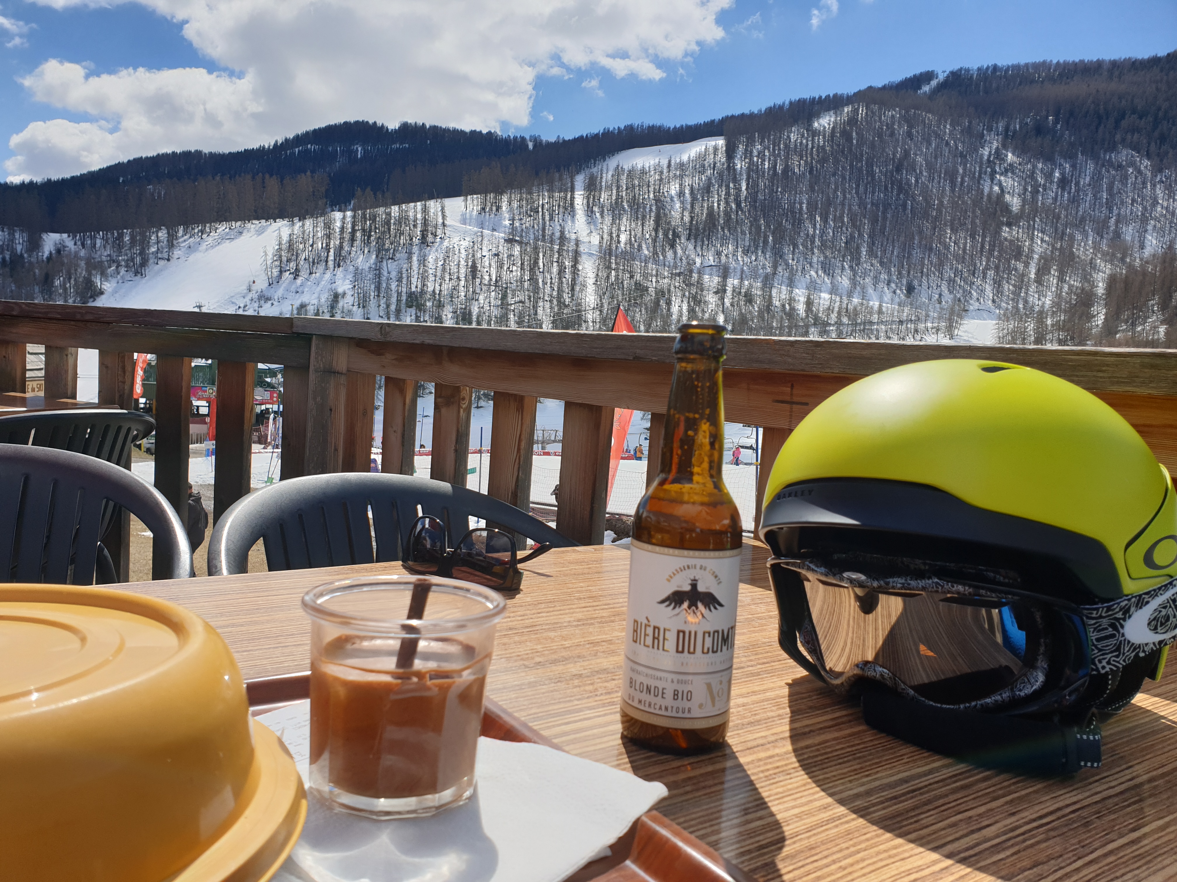 Terrasse ensoleillée pour une pause ski au top. Mais l'attente au self service peut être très longue et découragante.
