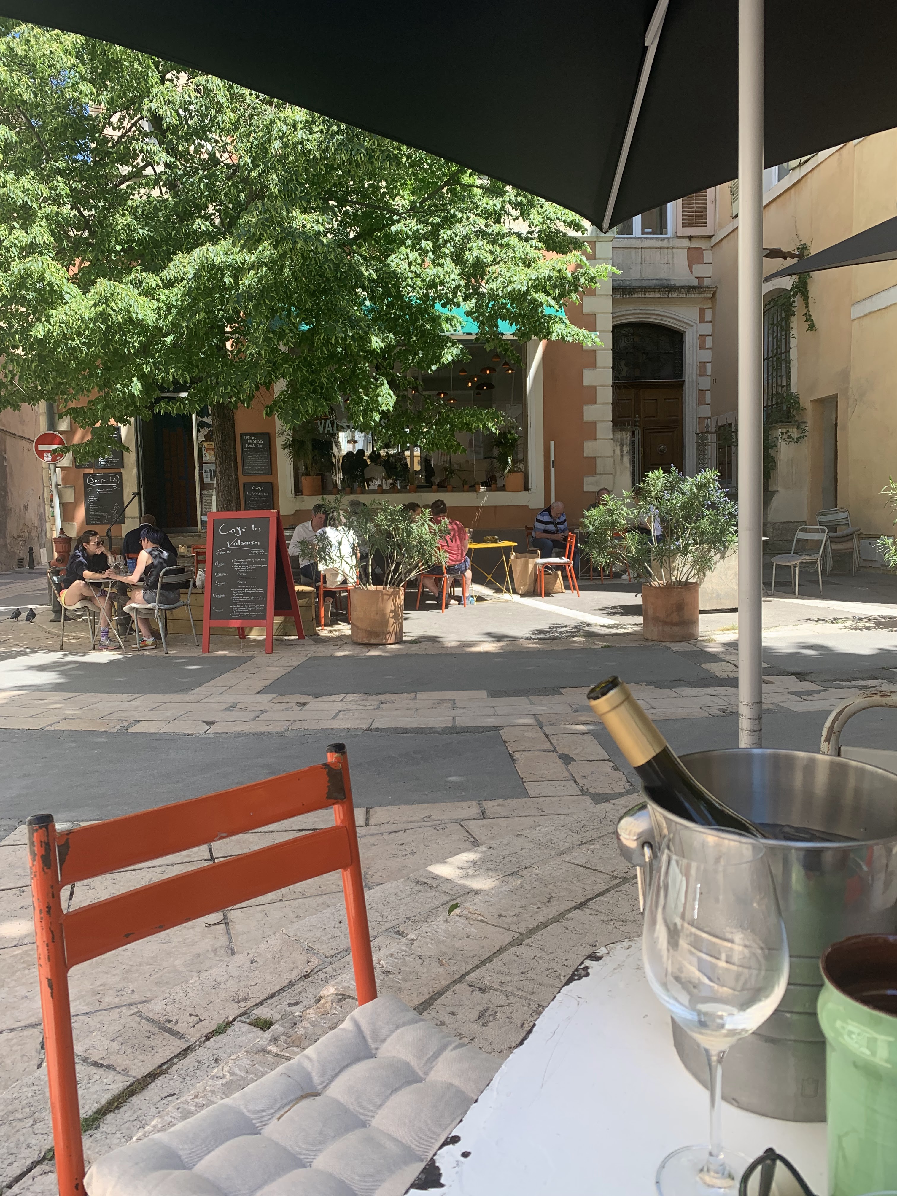 Après avoir fait du vélo depuis Gordes, c'était l'endroit idéal pour déjeuner pour se détendre, prendre une rose légère et un menu sain et très frais. Les places extérieures étaient ombragées avec une jolie vue sur les allées et venues d'Apt. Recommande fortement!
