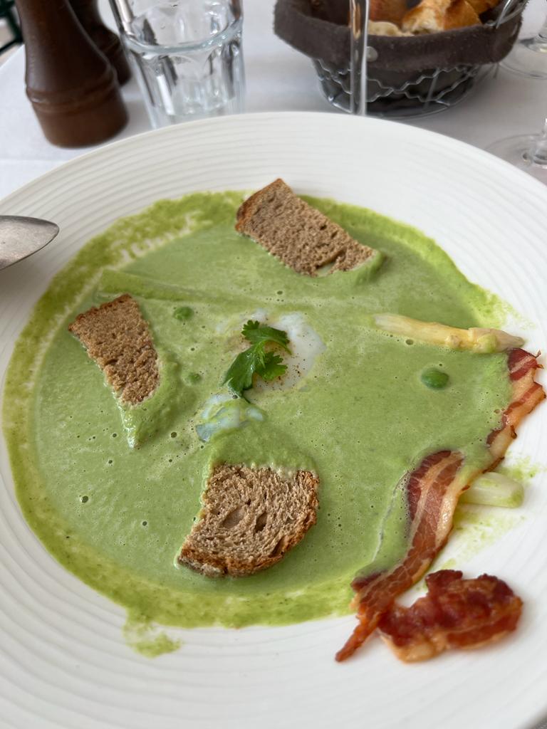 Le personnel était sympathique et faisait de son mieux pour communiquer en anglais. Le canard était bon. Cependant, le soufflé était totalement insuffisamment cuit et lorsque j'ai demandé plus de temps au four, il était encore presque coulant. C'est décevant car je l'attendais vraiment avec impatience.