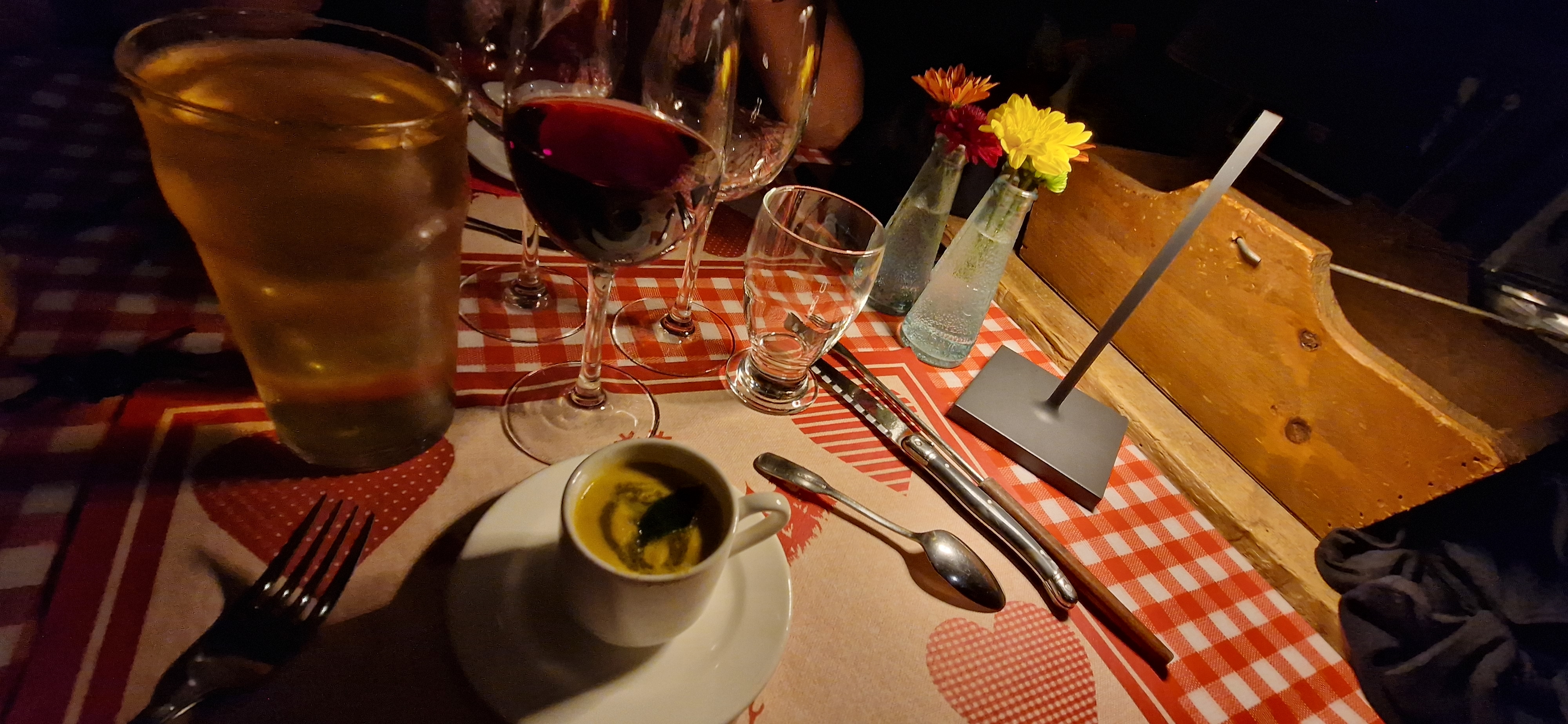 Cela faisait plusieurs années que nous venions à la précédente incarnation des vielles luges et la réincarnation n'a pas déçu ! Tellement heureuse de retrouver ce bel endroit avec une nourriture aussi bonne, sinon meilleure, qu'avant (mais ne le dites pas à Claude et Julie !). Nous y sommes allés deux fois cette semaine et nous reviendrons la semaine prochaine !