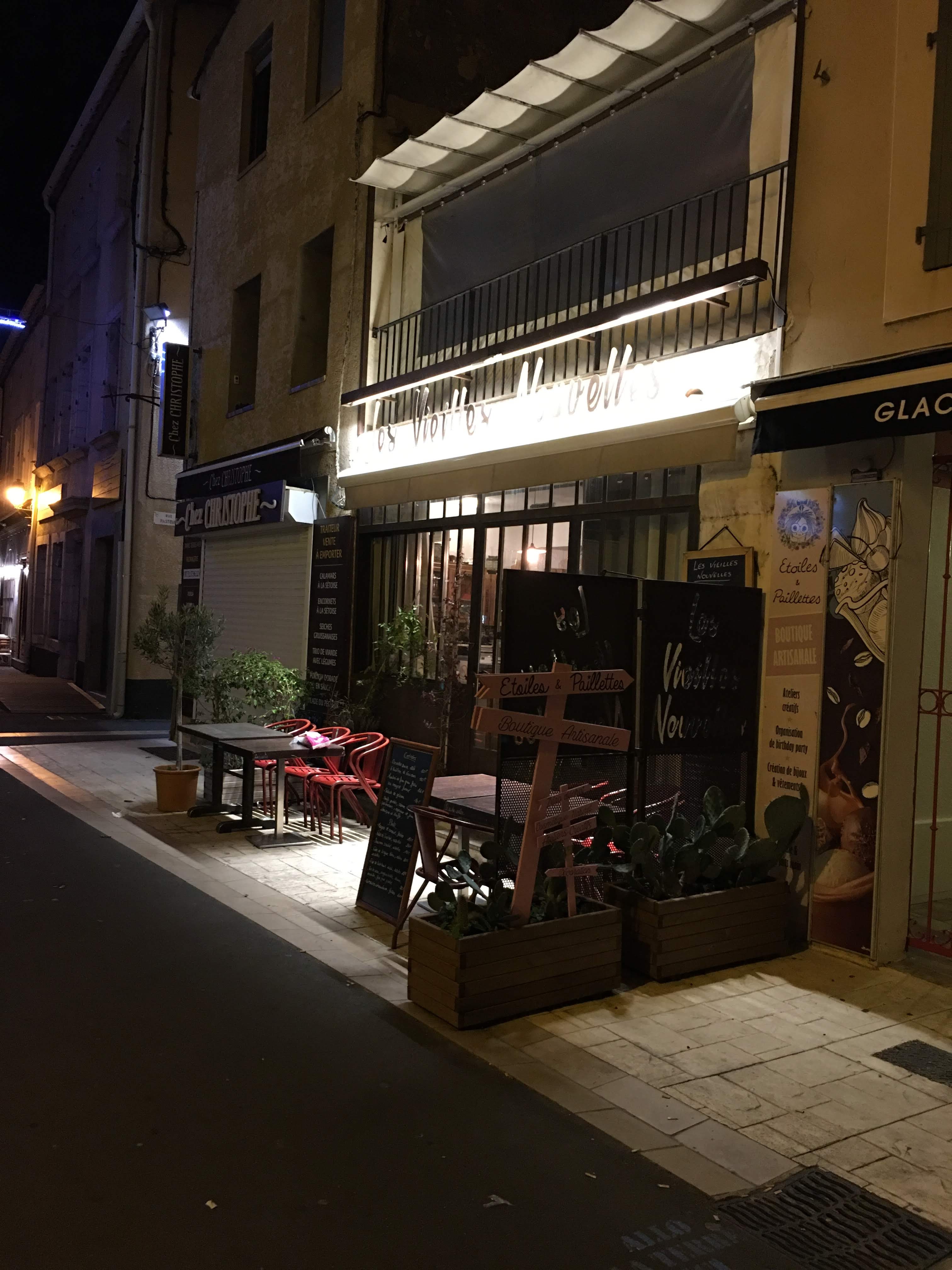 Quand tu es soûlé et gelé par le vent de Gruissan si froid et si fort que même les kit surfers restent à la maison, et que, hagard, tu cherches à manger et que tu tombes sur les Vieilles Nouvelles, tu y entres. Tu t'assieds. On t'accueille avec le sourire. Tu manges, c'est bon. Un menu à 18€ et une carte qui fait envie. Le vin va bien aussi. Et il y a de la Bud et de la tripel Karmeliet!!! Et tous les gens qui arrivent... sont accueillis et on leur trouve une place, et même s'il n'y a plus de menu, il reste toujours à manger. L'accueil, le rapport qualité-prix... la déco décalée 👍
