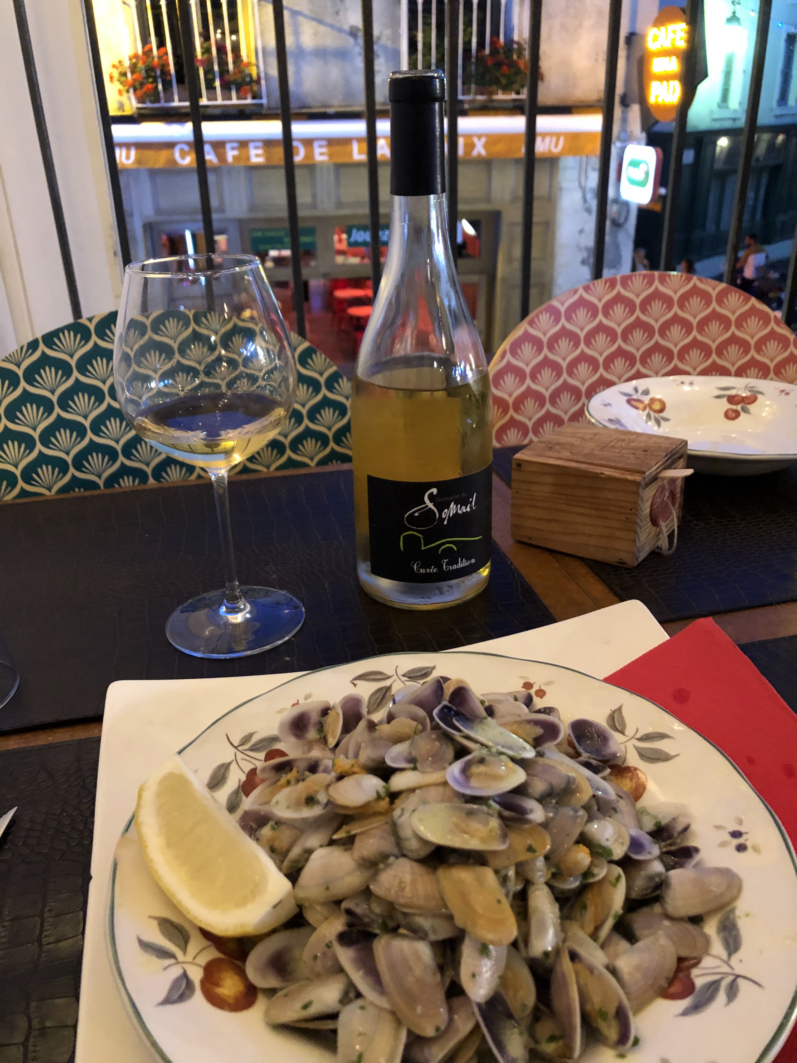 Couteau à la persillade, avzc un verre de vin blanc, 22€ c'était bon. Personnels très sympas.