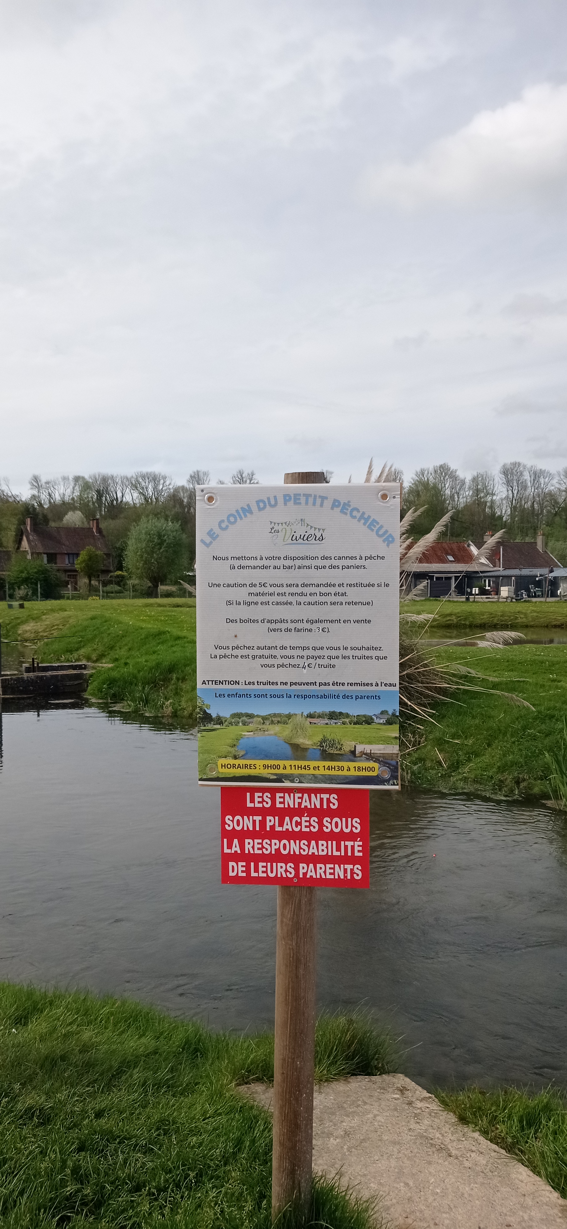 Quelques mètres de rivière pour pêcher avec enfants et un parcours de pêches de 200 mètres (si on peut appeler ça un parcours...). L'eau translucide soit disant, ce jour là était savonneuse comme sortis d'un lave linge. Et interdit de pêcher à la cuillère. Bref très décevant et pas pour pêcheur.